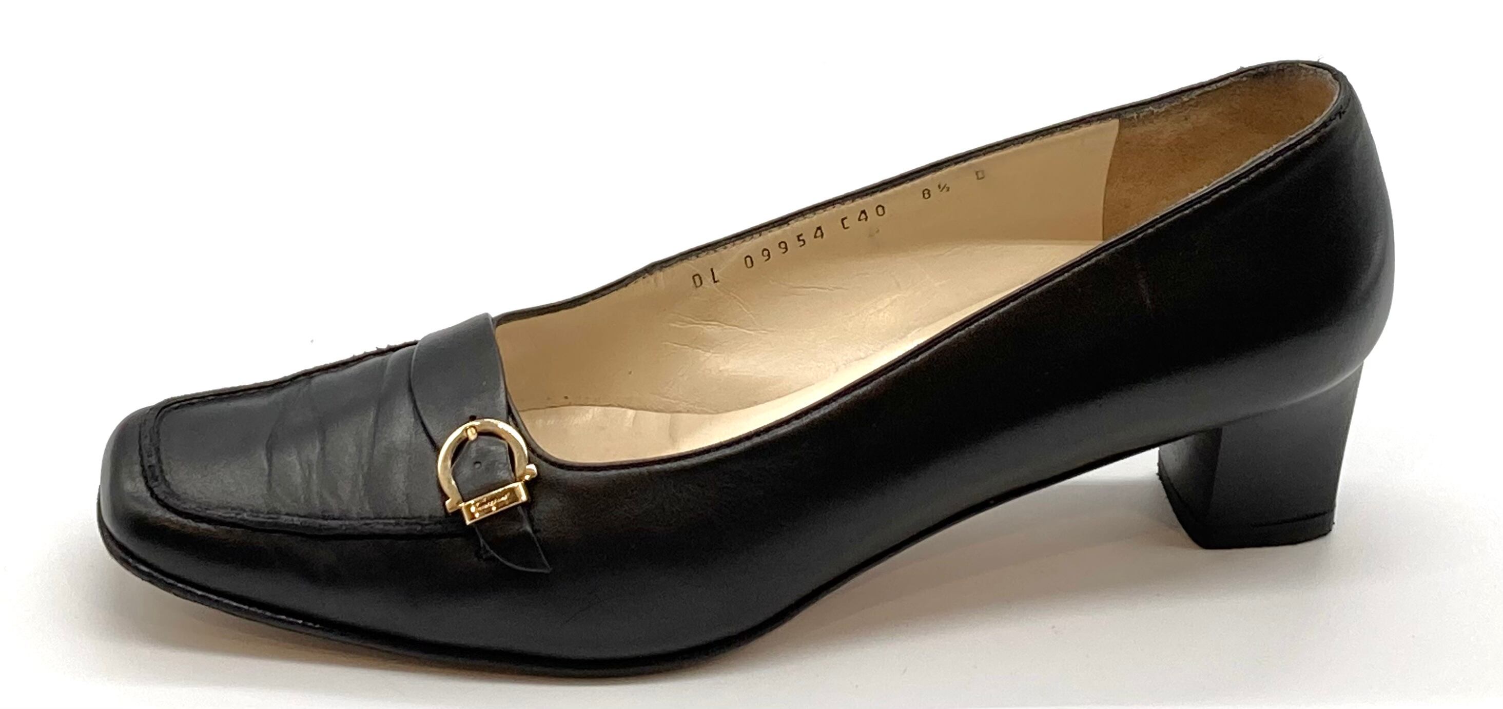 OLD FERRAGAMO(オールドフェラガモ) ブラックレザーガンチーニベルトパンプス 8 1/2D
