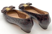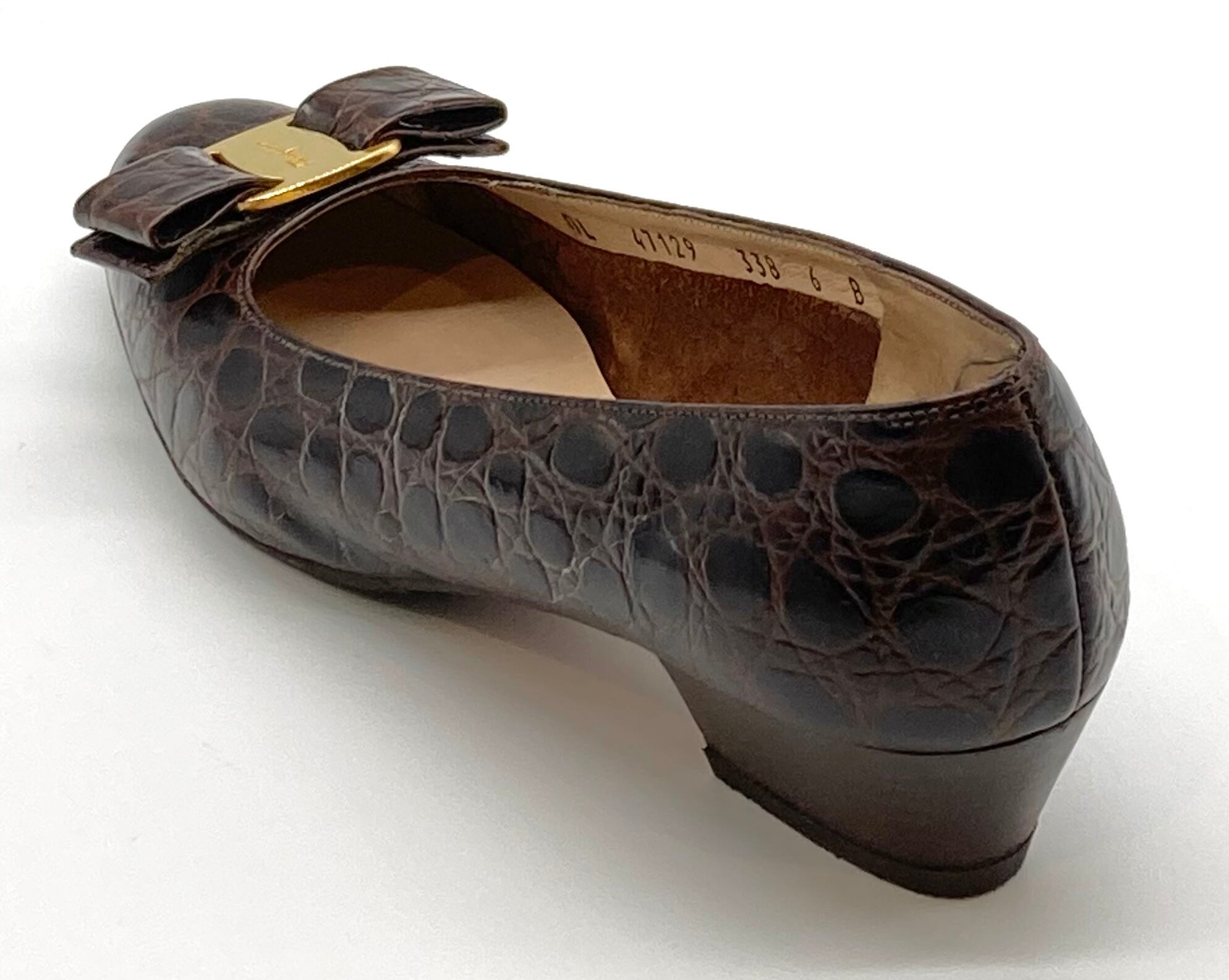 OLD FERRAGAMO(オールドフェラガモ) ダークブラウン型押しレザーヴァラリボンパンプス 6B