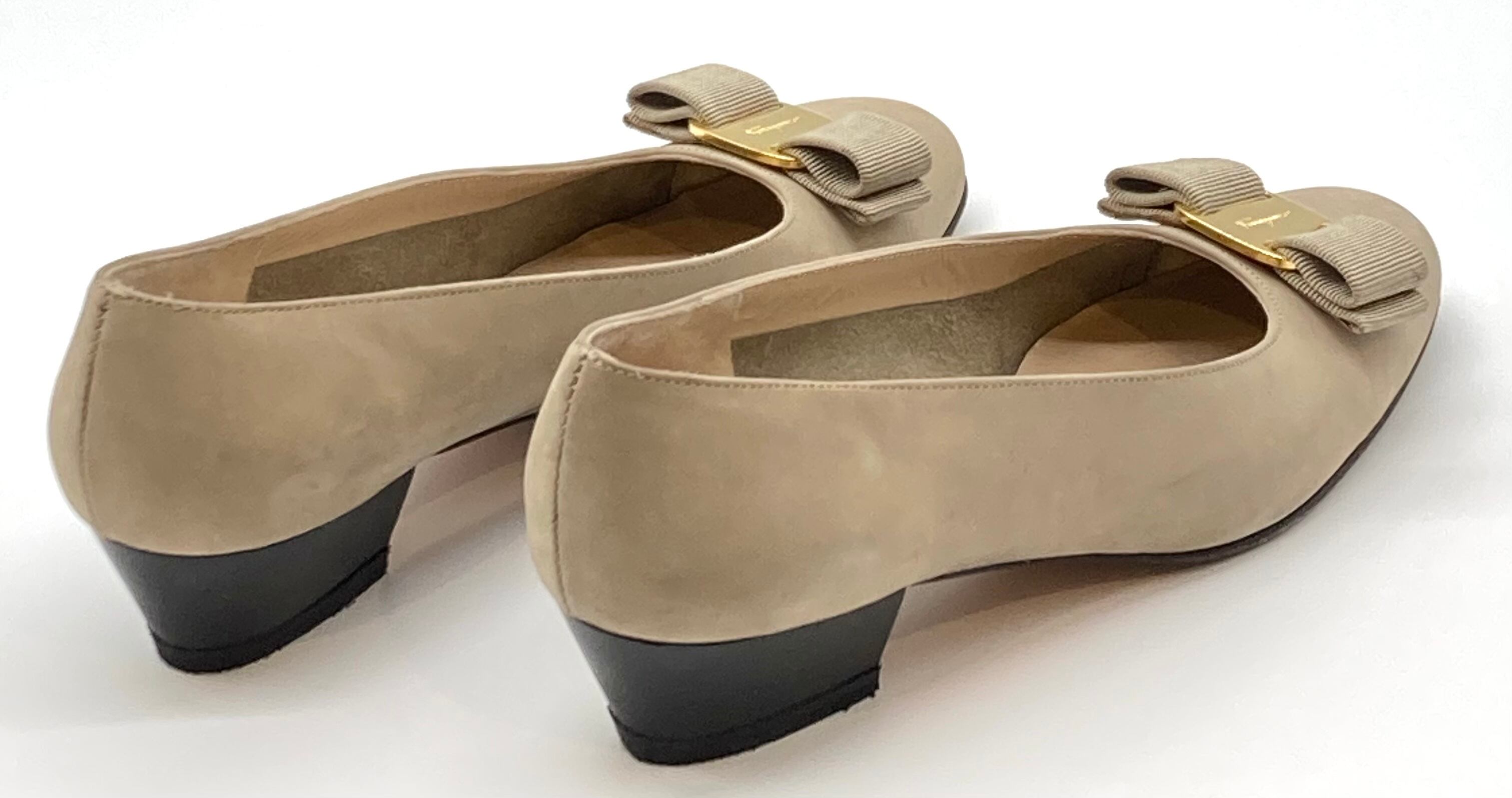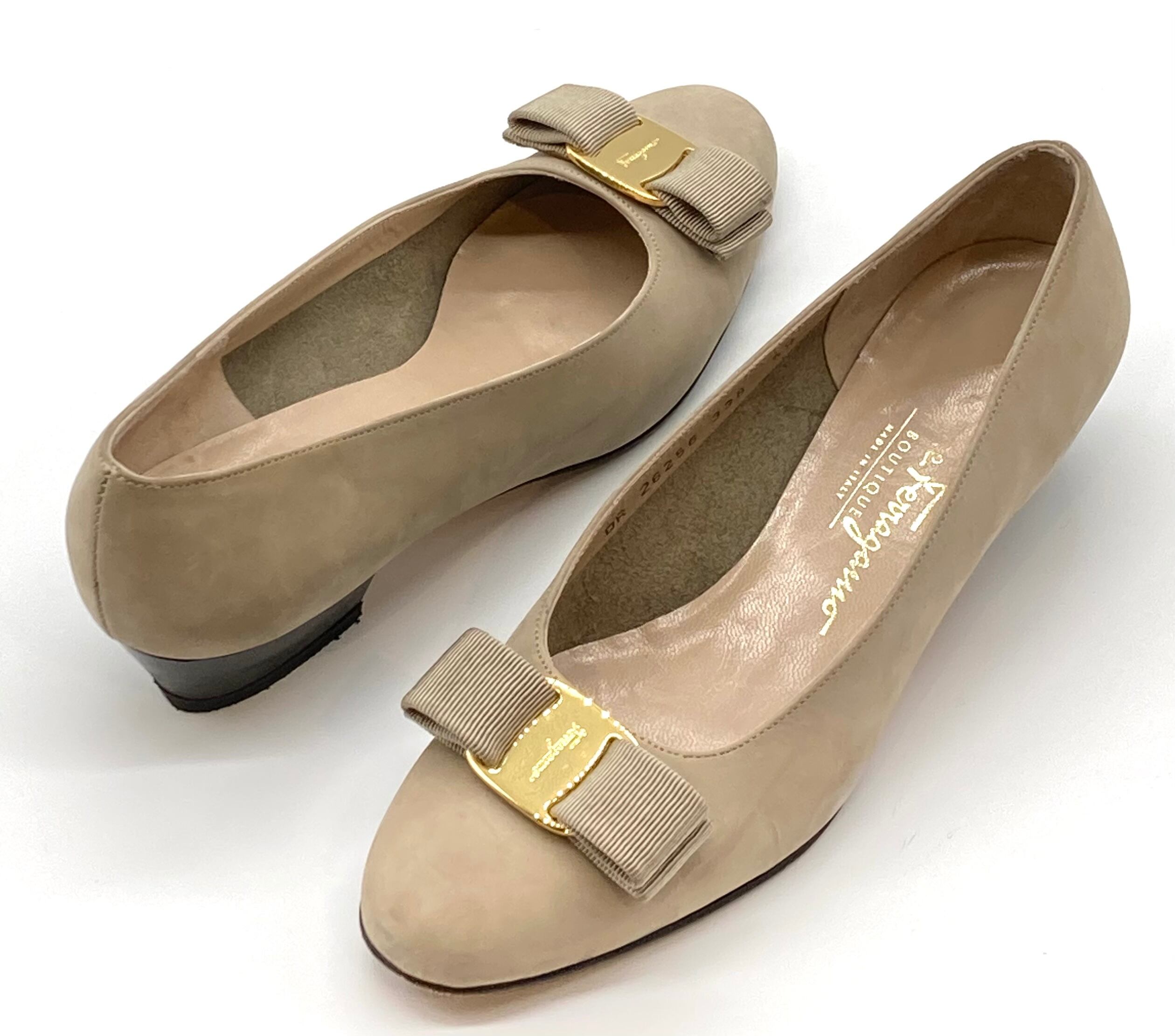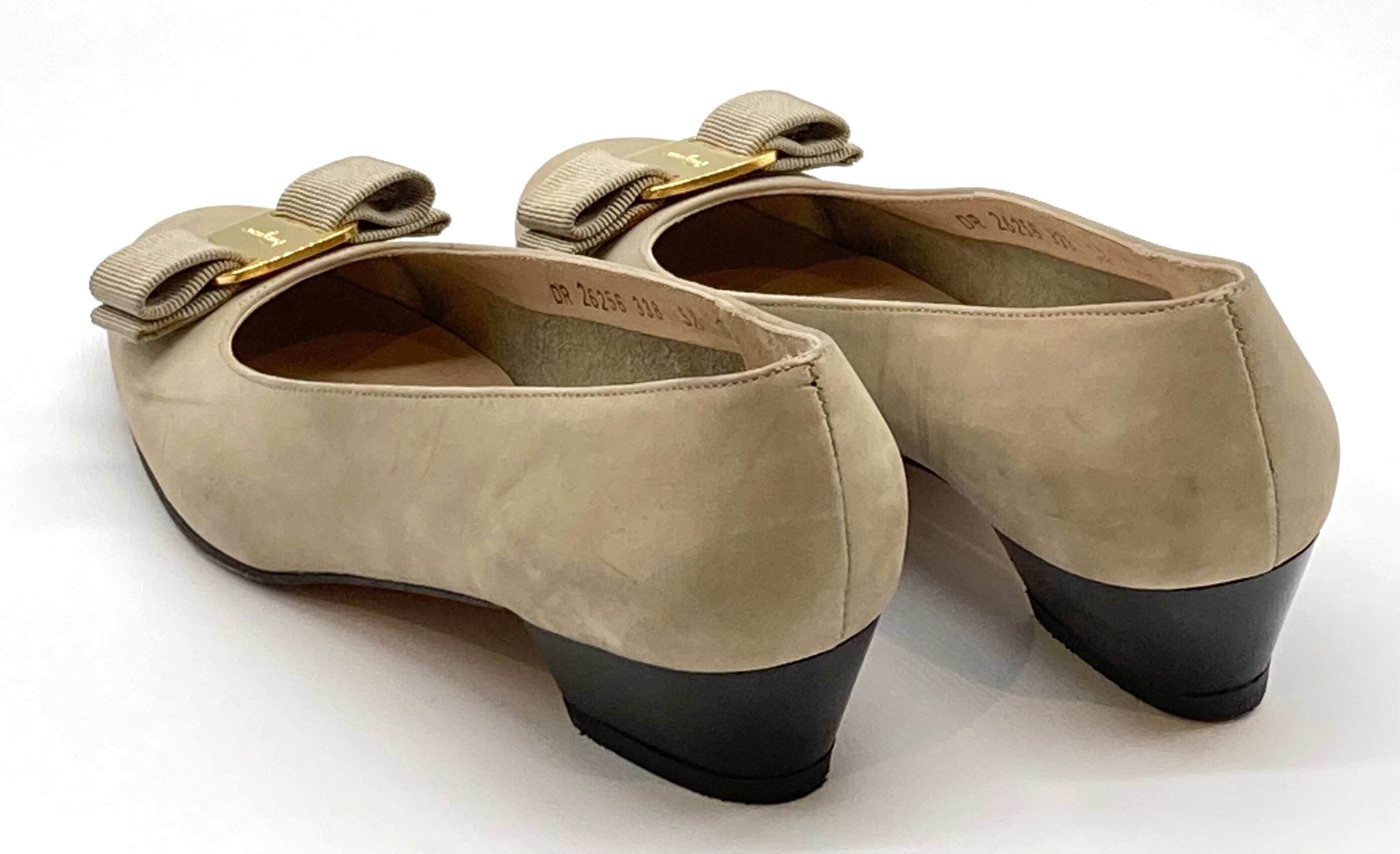 OLD FERRAGAMO(オールドフェラガモ) グレージュスエードヴァラリボンパンプス 5 1/2C