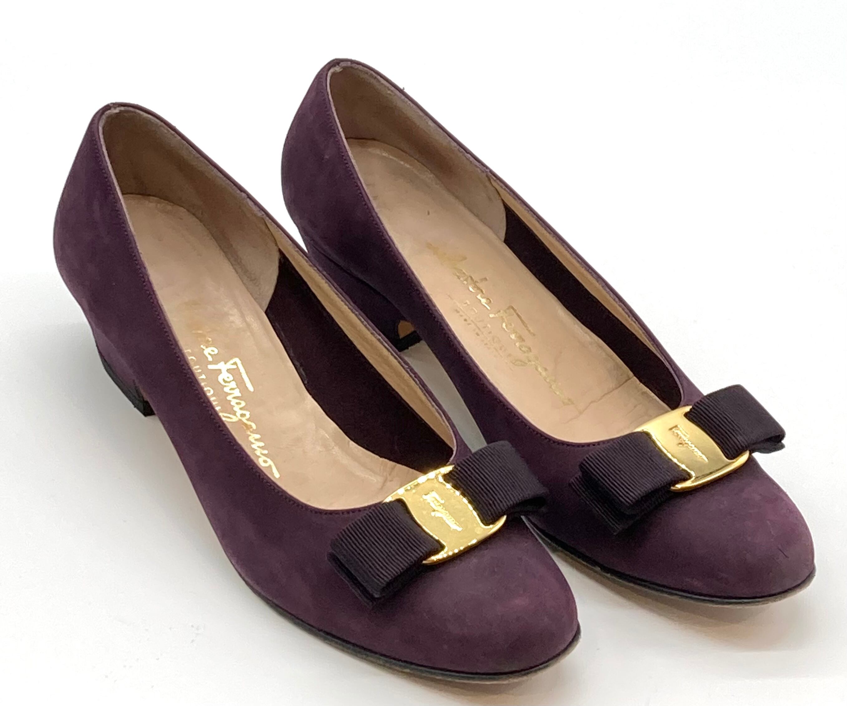 OLD FERRAGAMO(オールドフェラガモ) ダークパープルスエードヴァラリボンパンプス 7AA