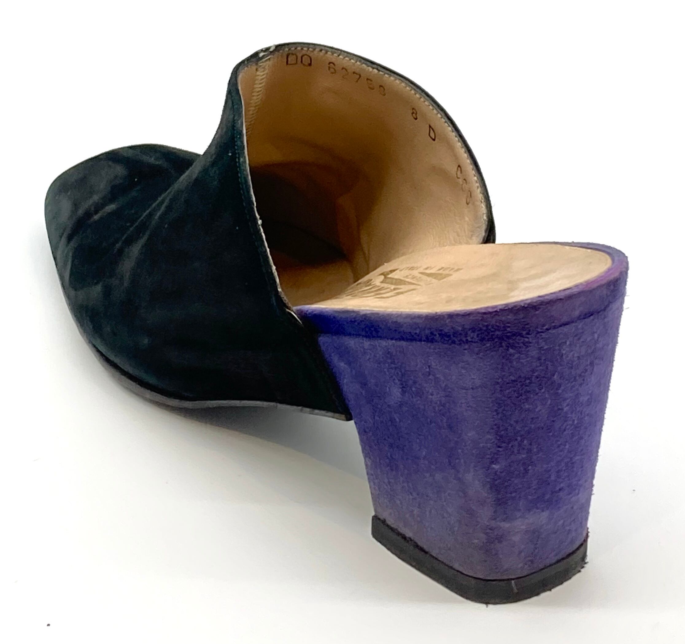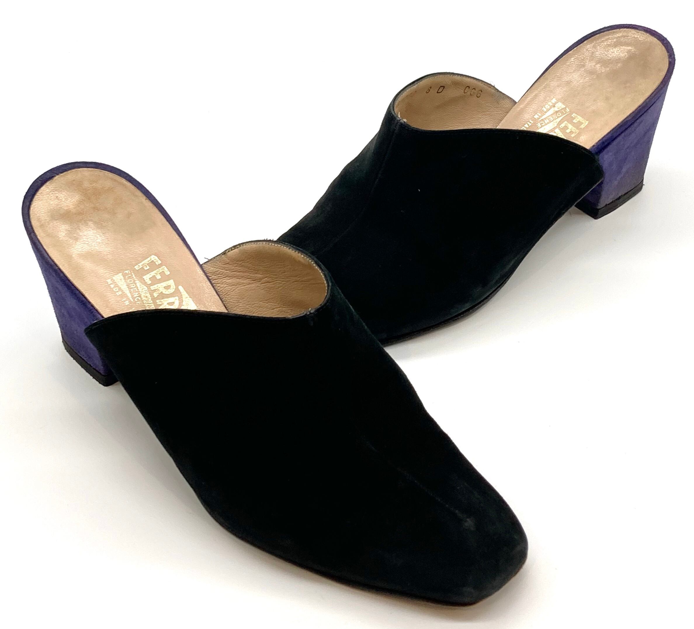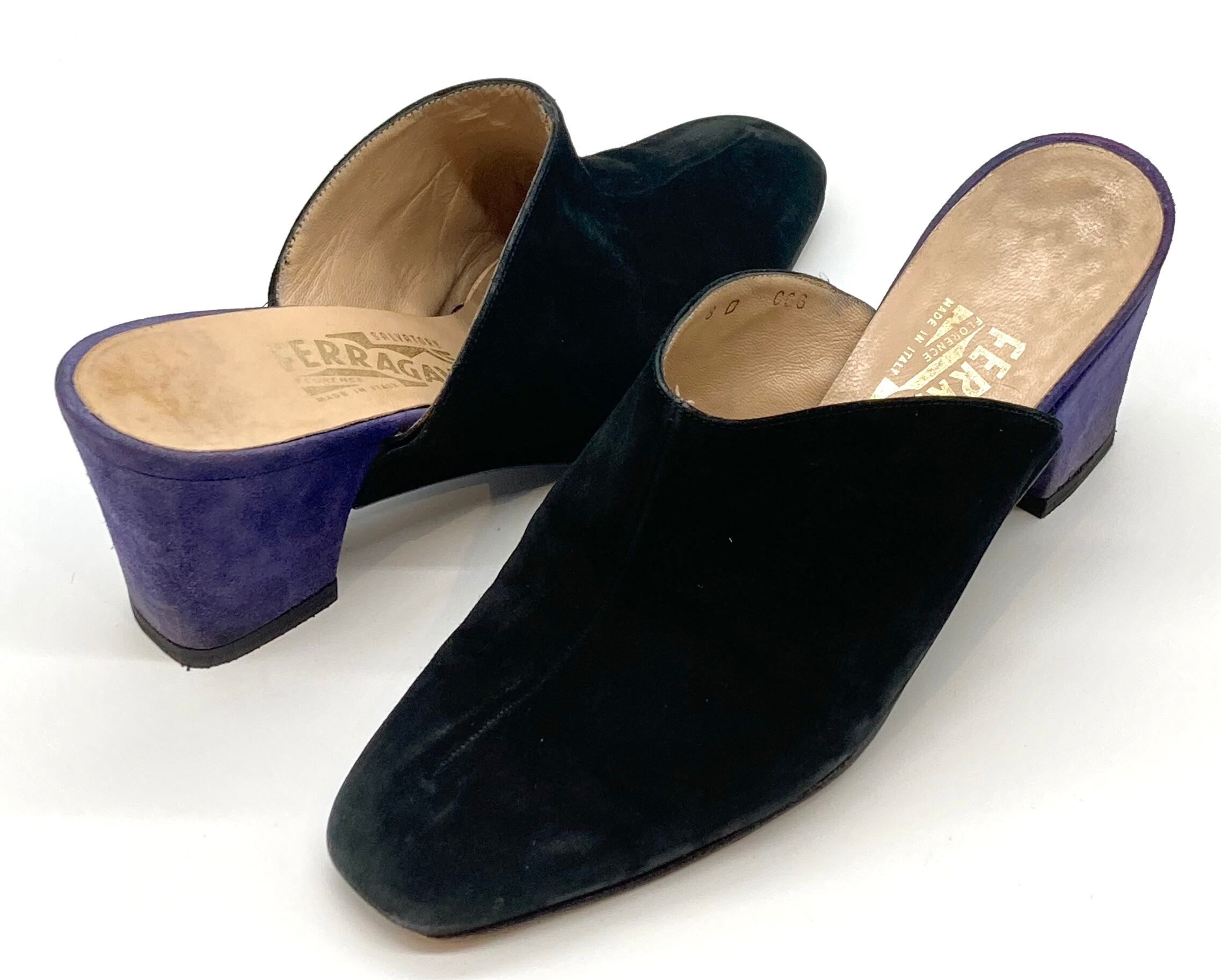 OLD FERRAGAMO(オールドフェラガモ) ブラック×パープルスエードバイカラーミュール 8D