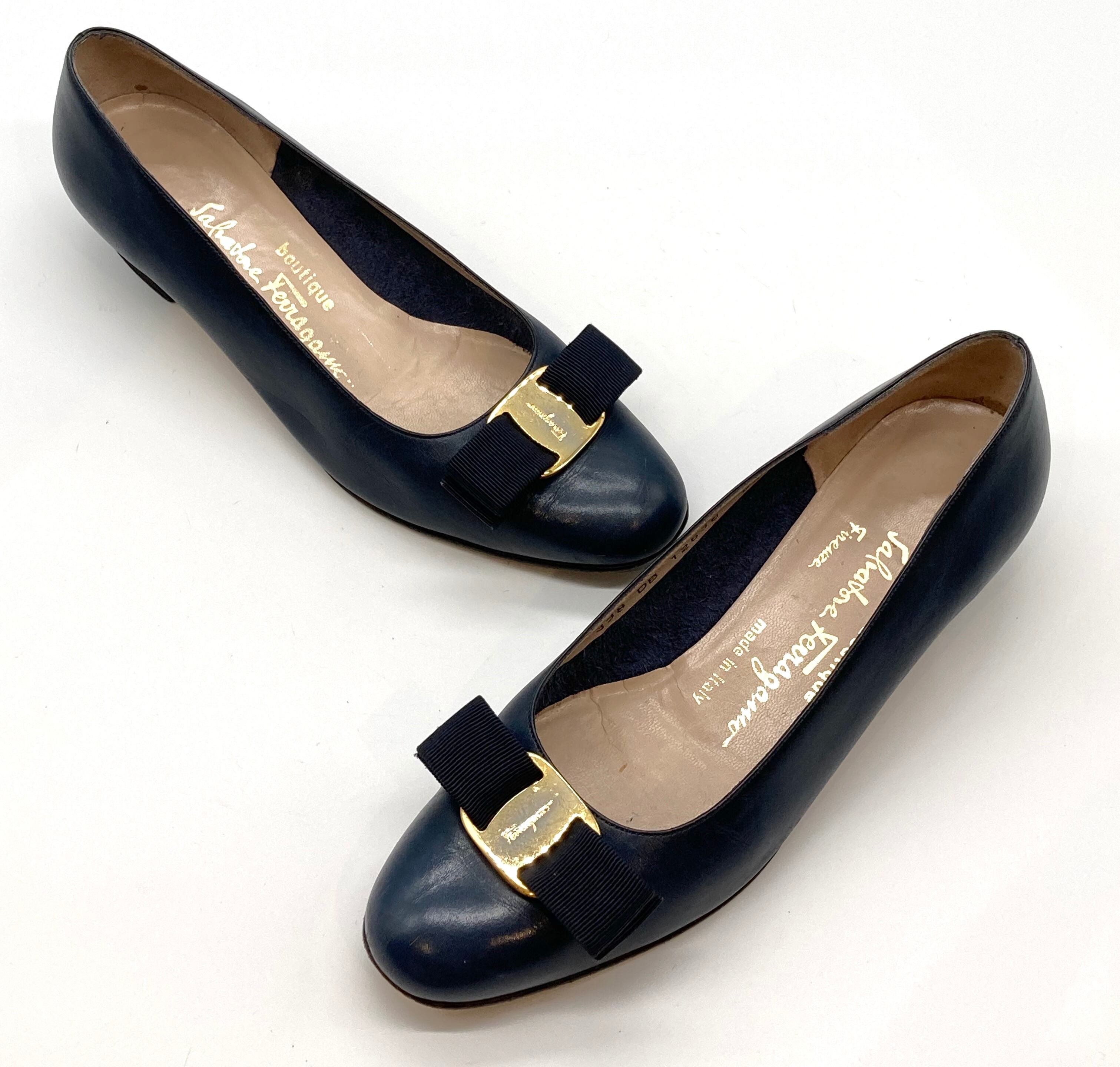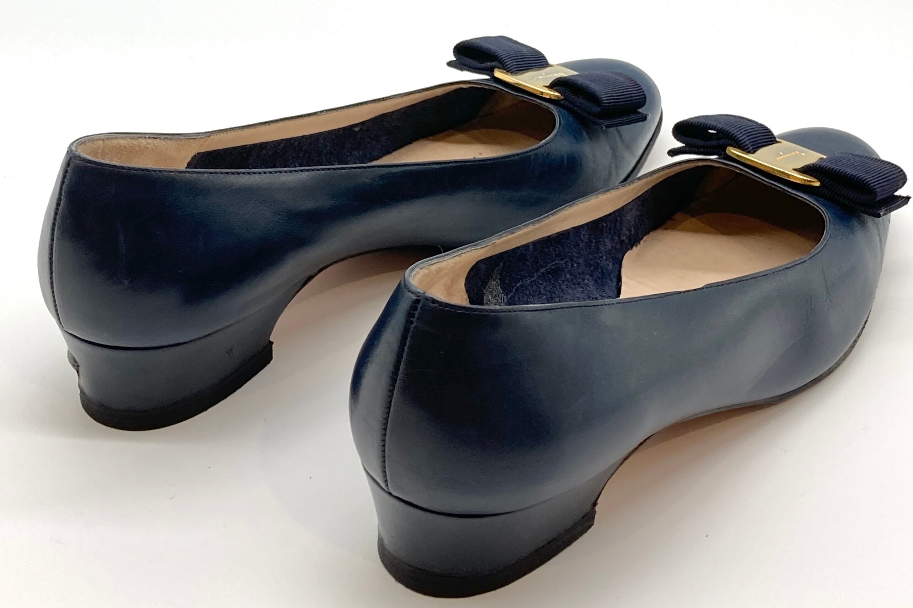 OLD FERRAGAMO(オールドフェラガモ) ネイビーレザーヴァラリボンパンプス 6 1/2B