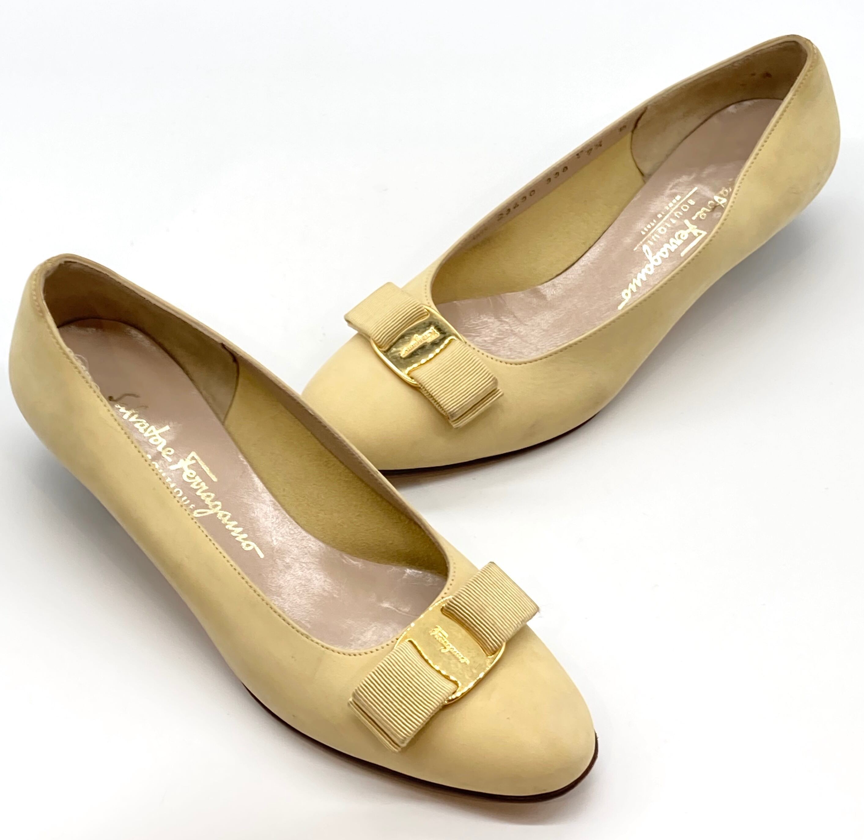 OLD FERRAGAMO(オールドフェラガモ) イエロースエードヴァラリボンパンプス 7 1/2B