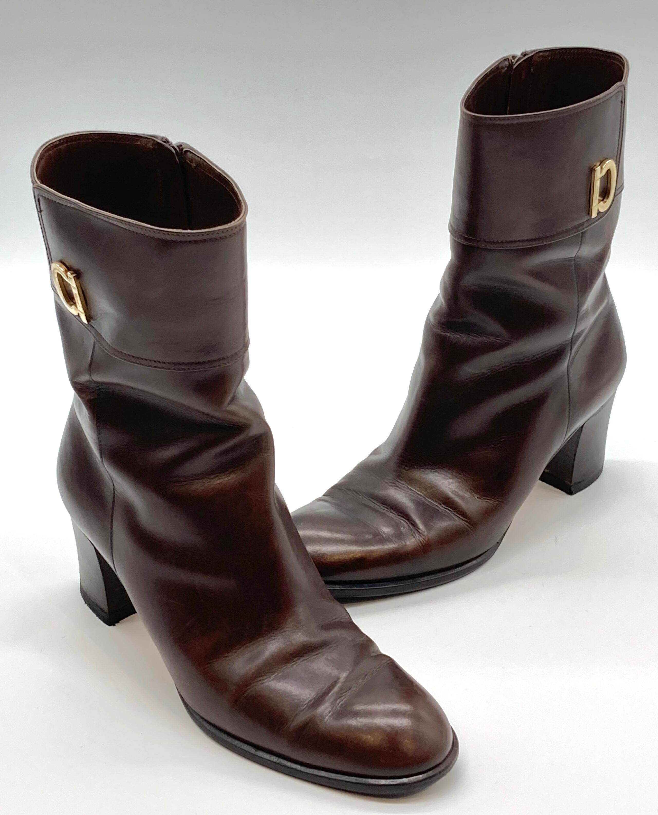 OLD FERRAGAMO(オールドフェラガモ)ダークブラウンレザーガンチーニ金具付きハーフブーツ 5C