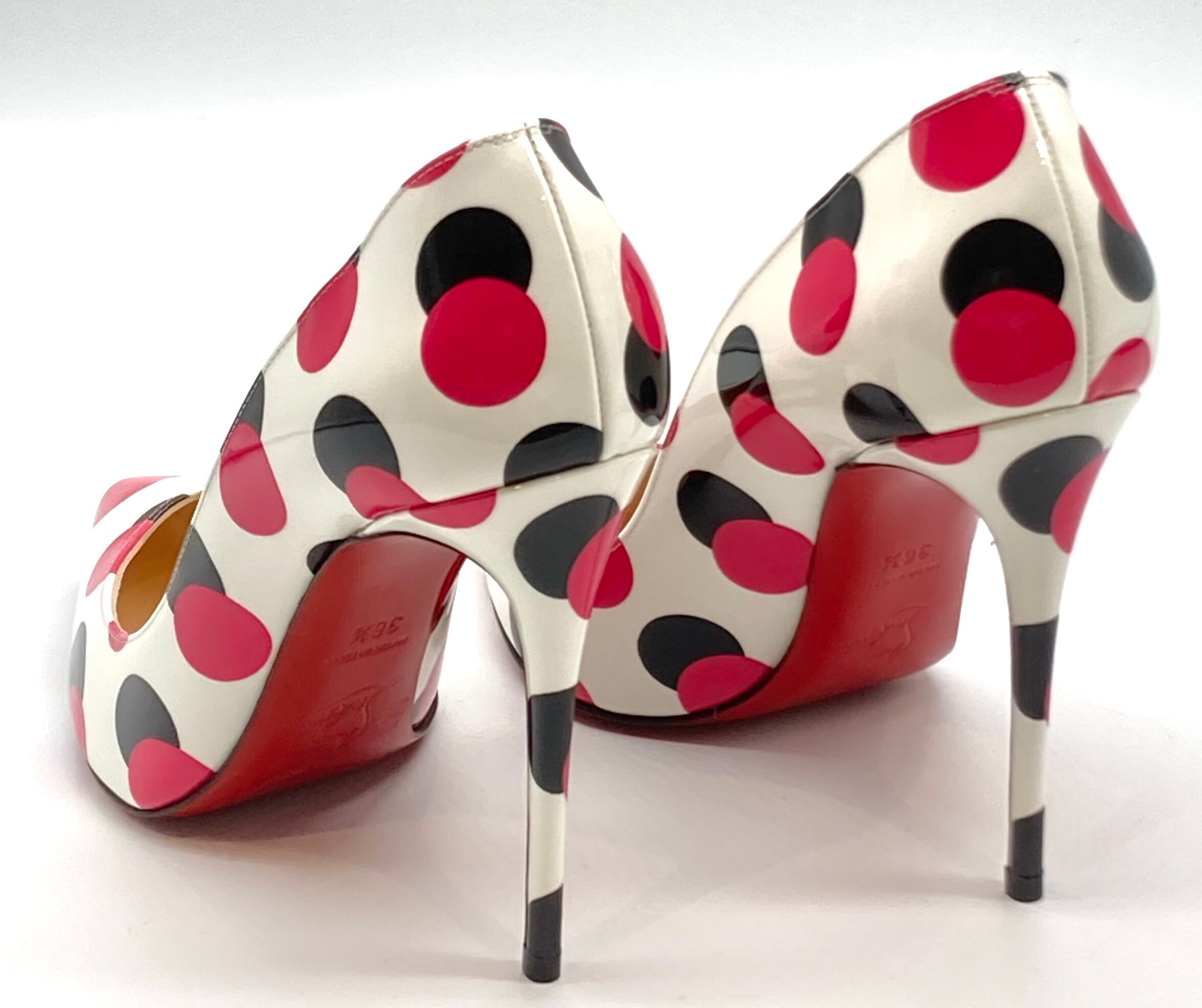 Christian Louboutin(クリスチャンルブタン) ホワイト×ピンク&ブラックドットパテントパンプス 36 1/2