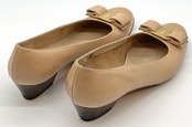ベージュレザーヴァラリボンパンプス