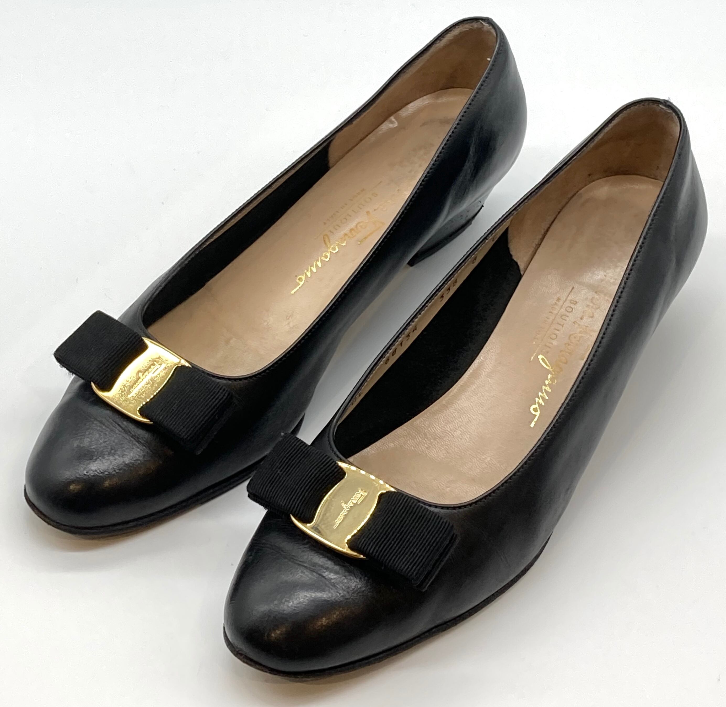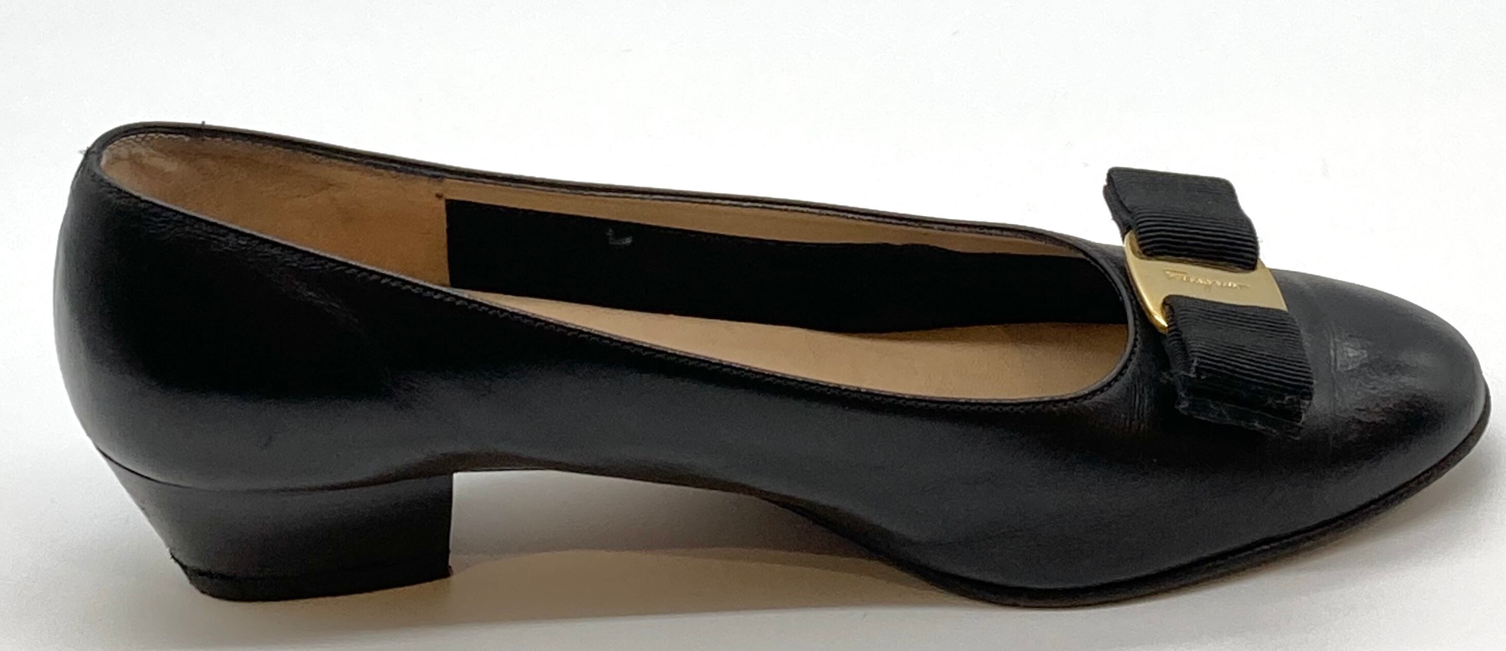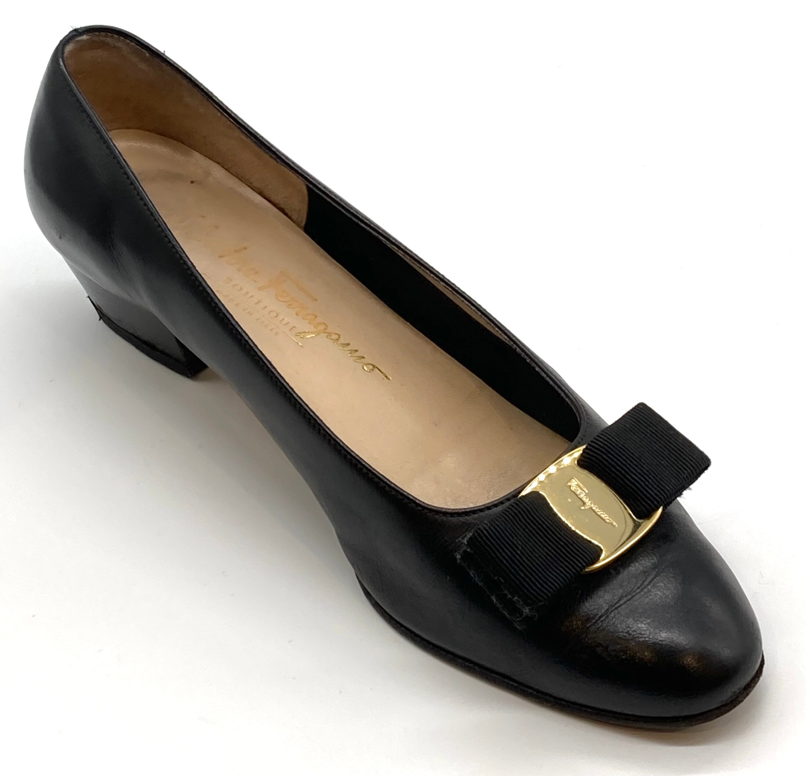 OLD FERRAGAMO(オールドフェラガモ) ブラックレザーヴァラリボンパンプス 8C