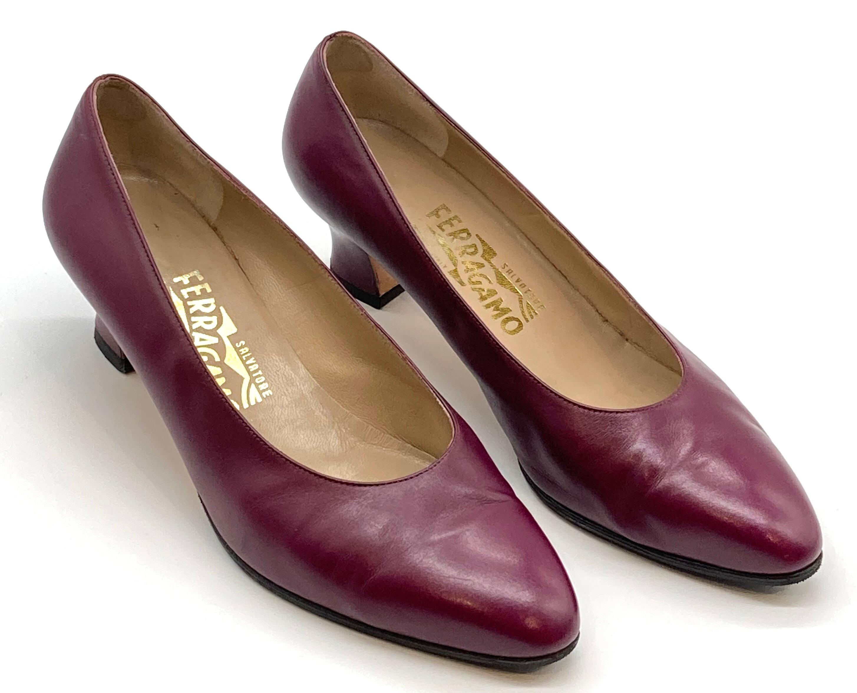 OLD FERRAGAMO(オールドフェラガモ) パープルレザープレーンパンプス 8D