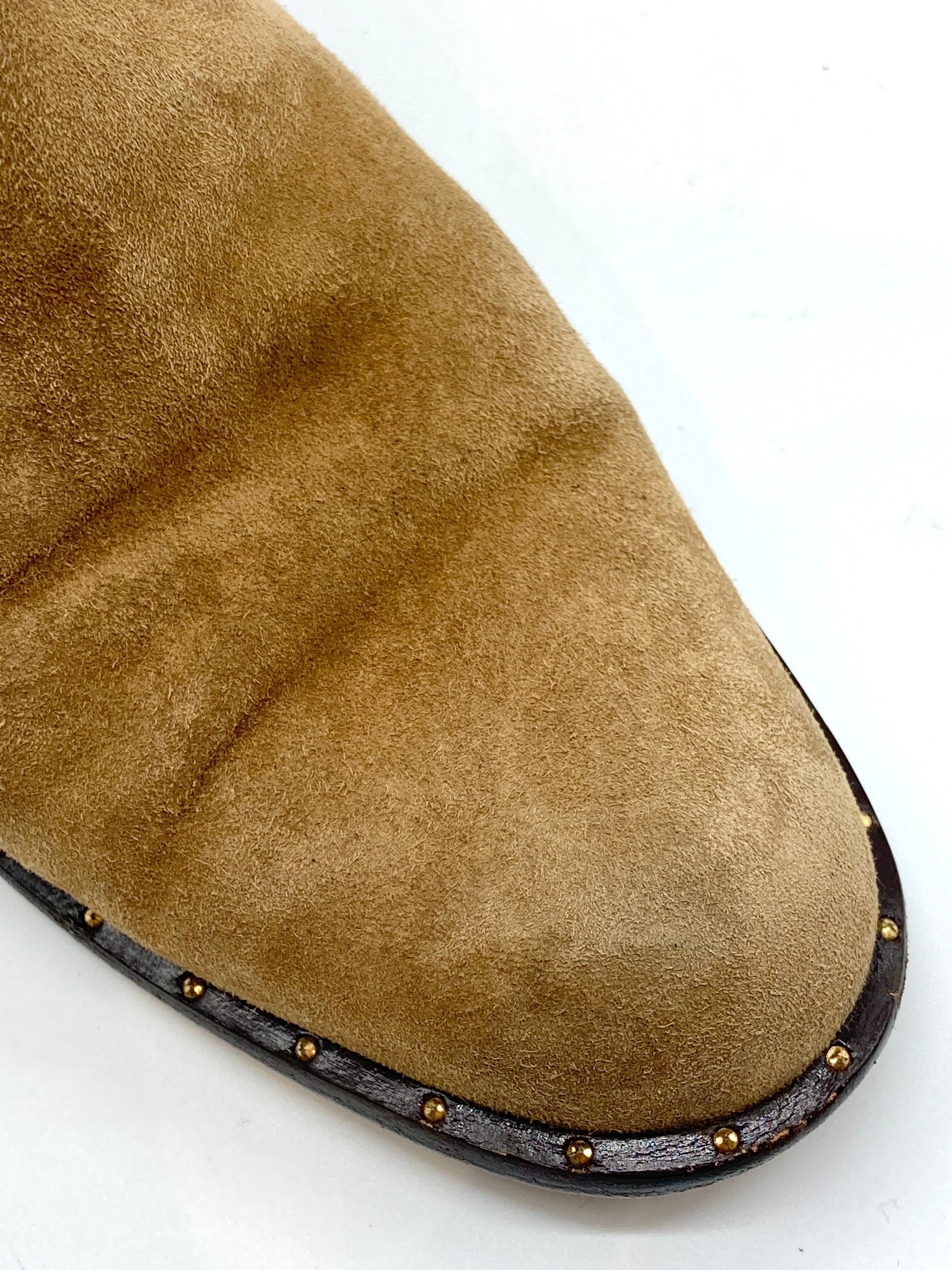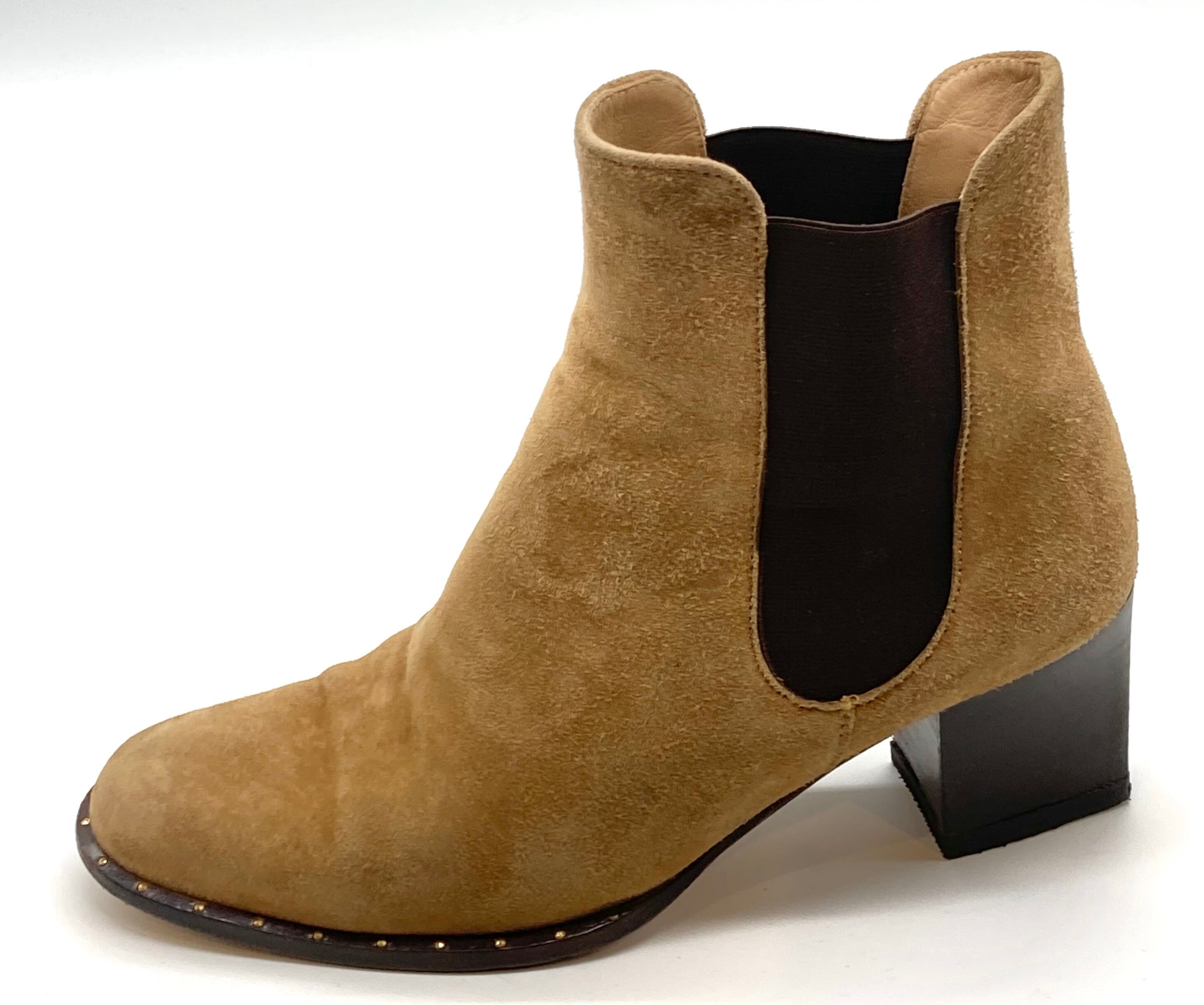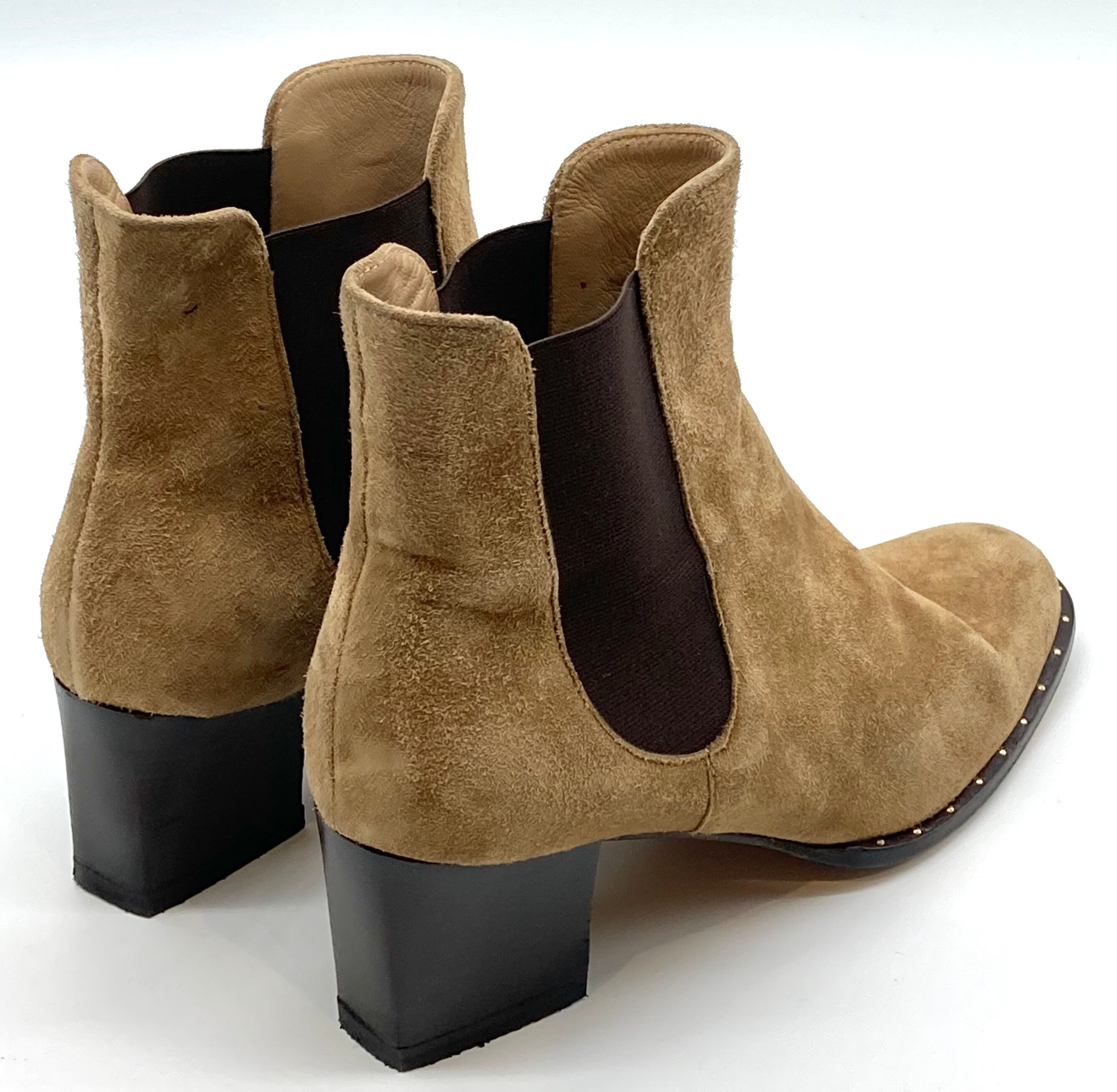 サンドベージュのスエードのサイドゴアデザインで、ファスナーがなくスポッと履けるタイプです。