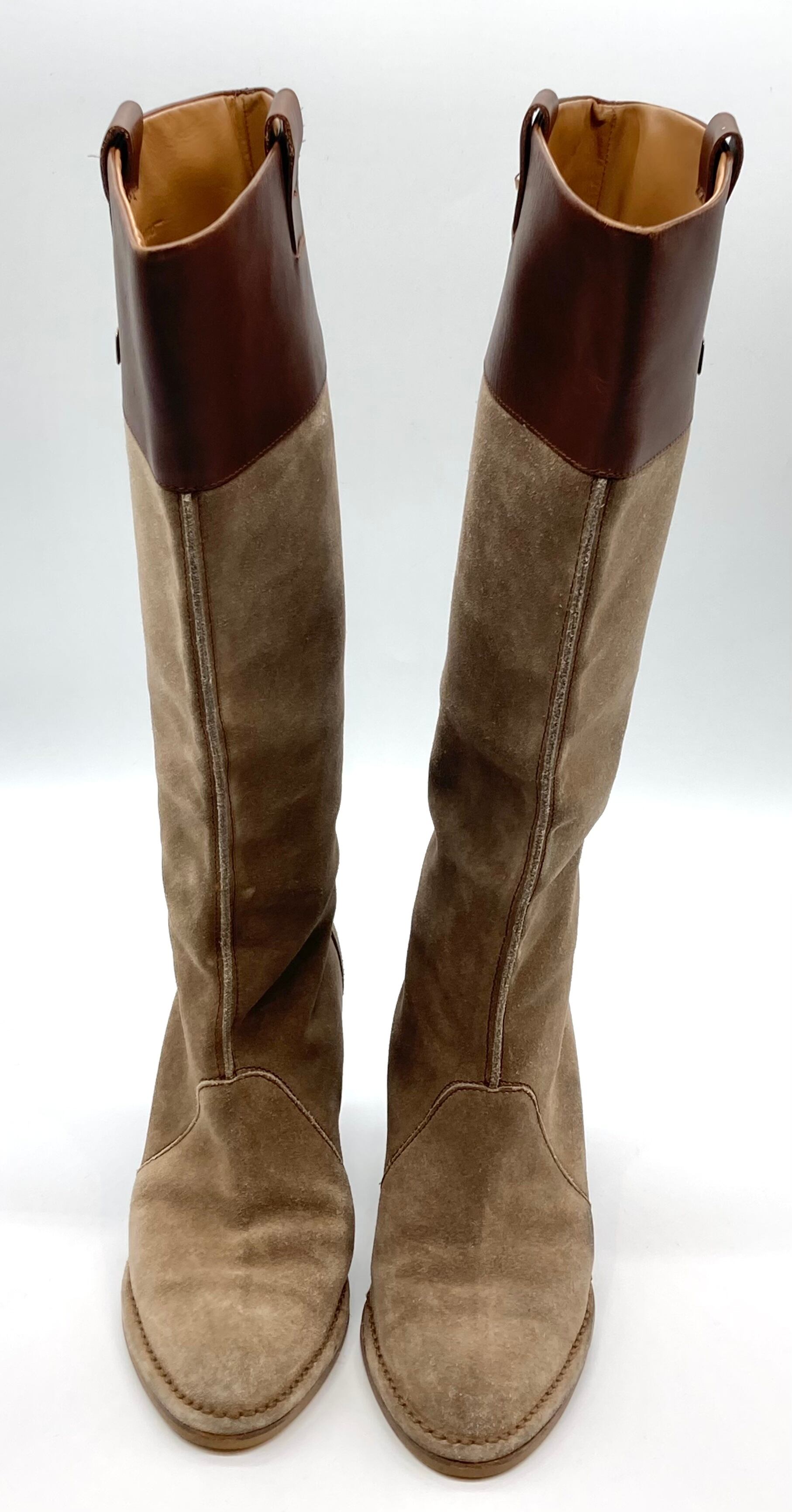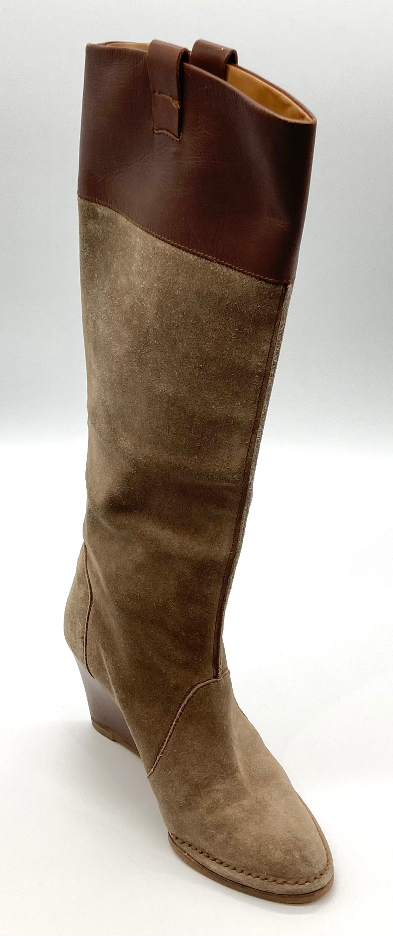 サンドベージュスエード×ブラウンレザーロングブーツ