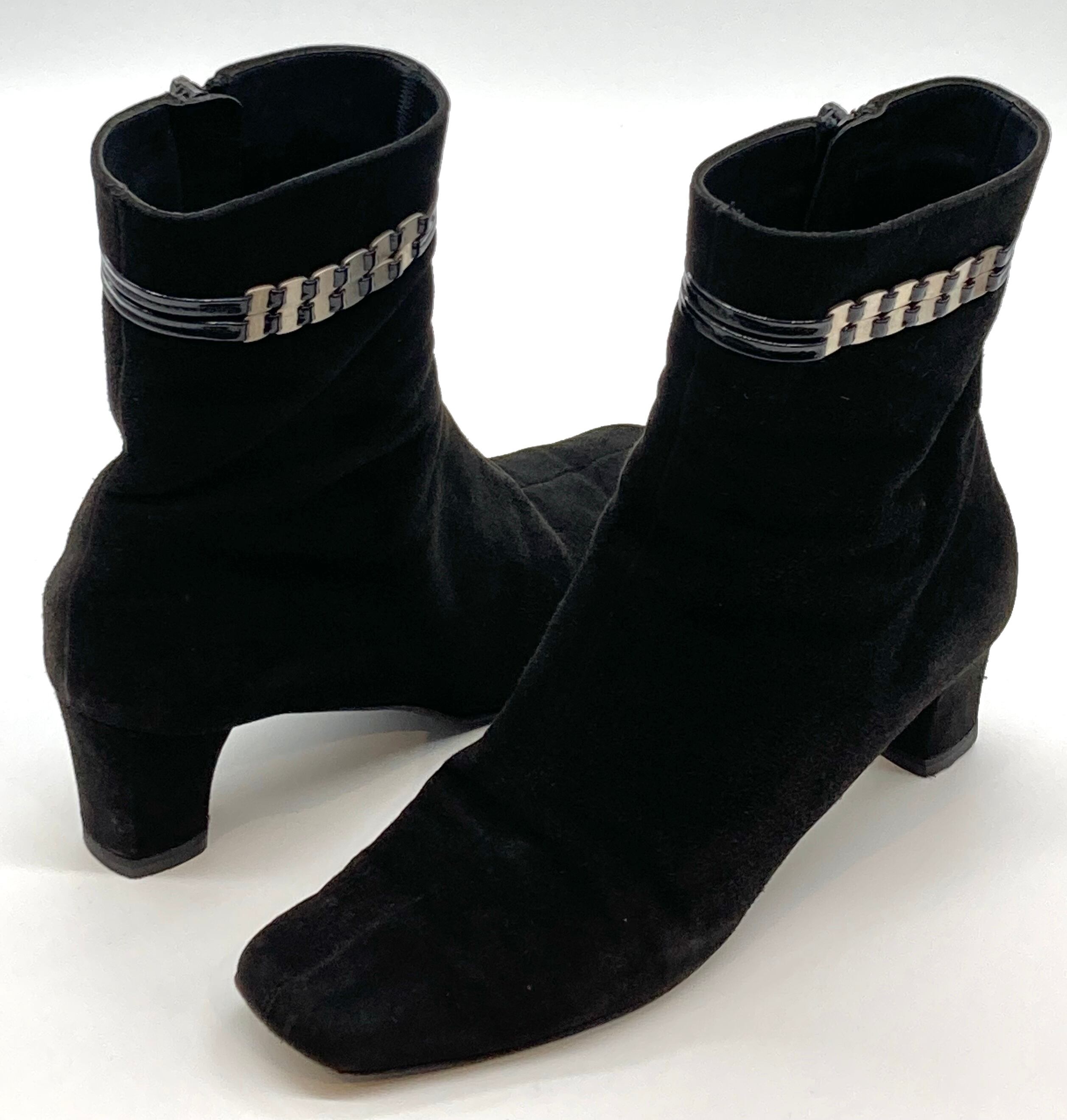 ブラックスエードヴァラ金具付きショートブーツ