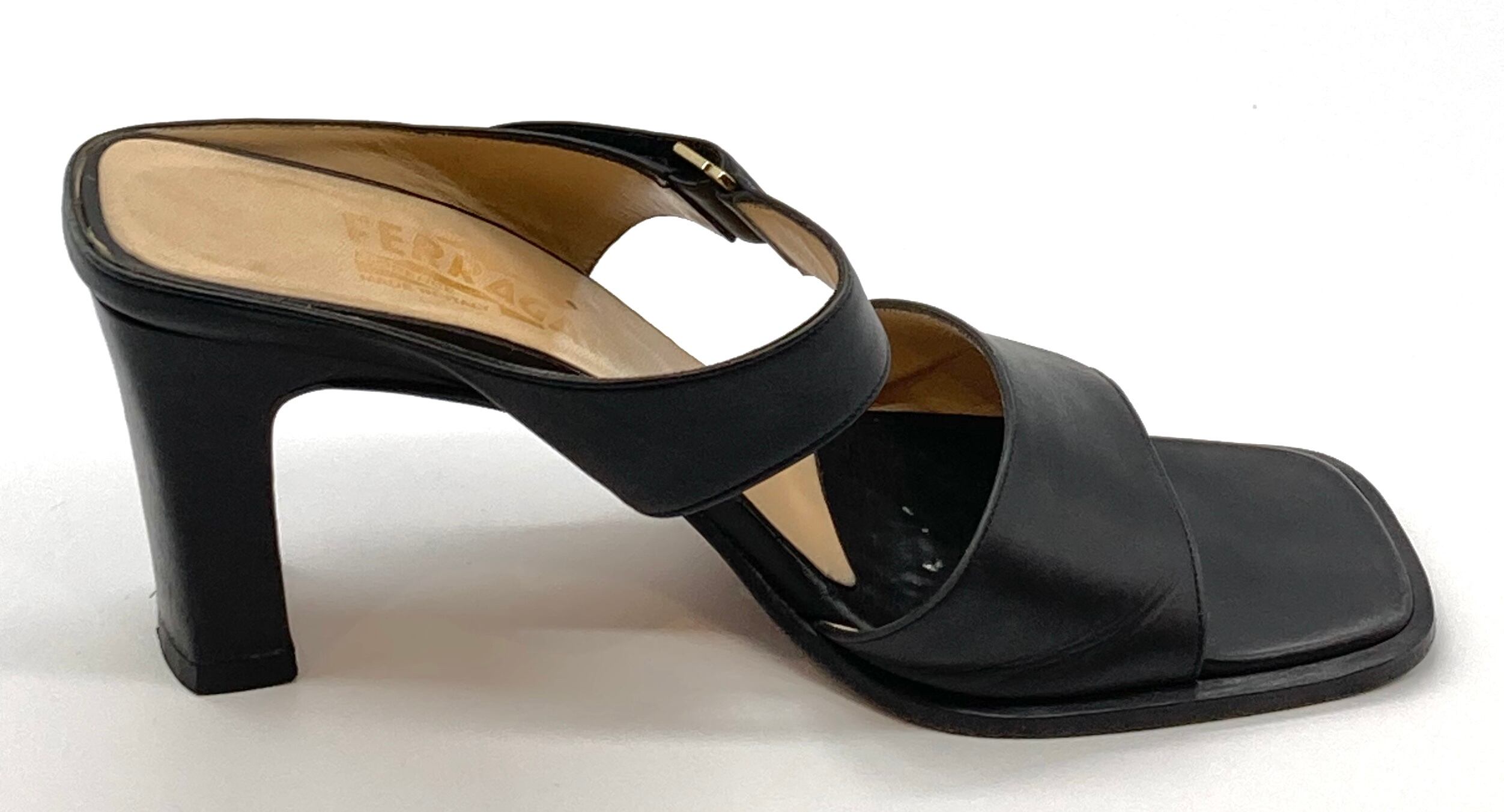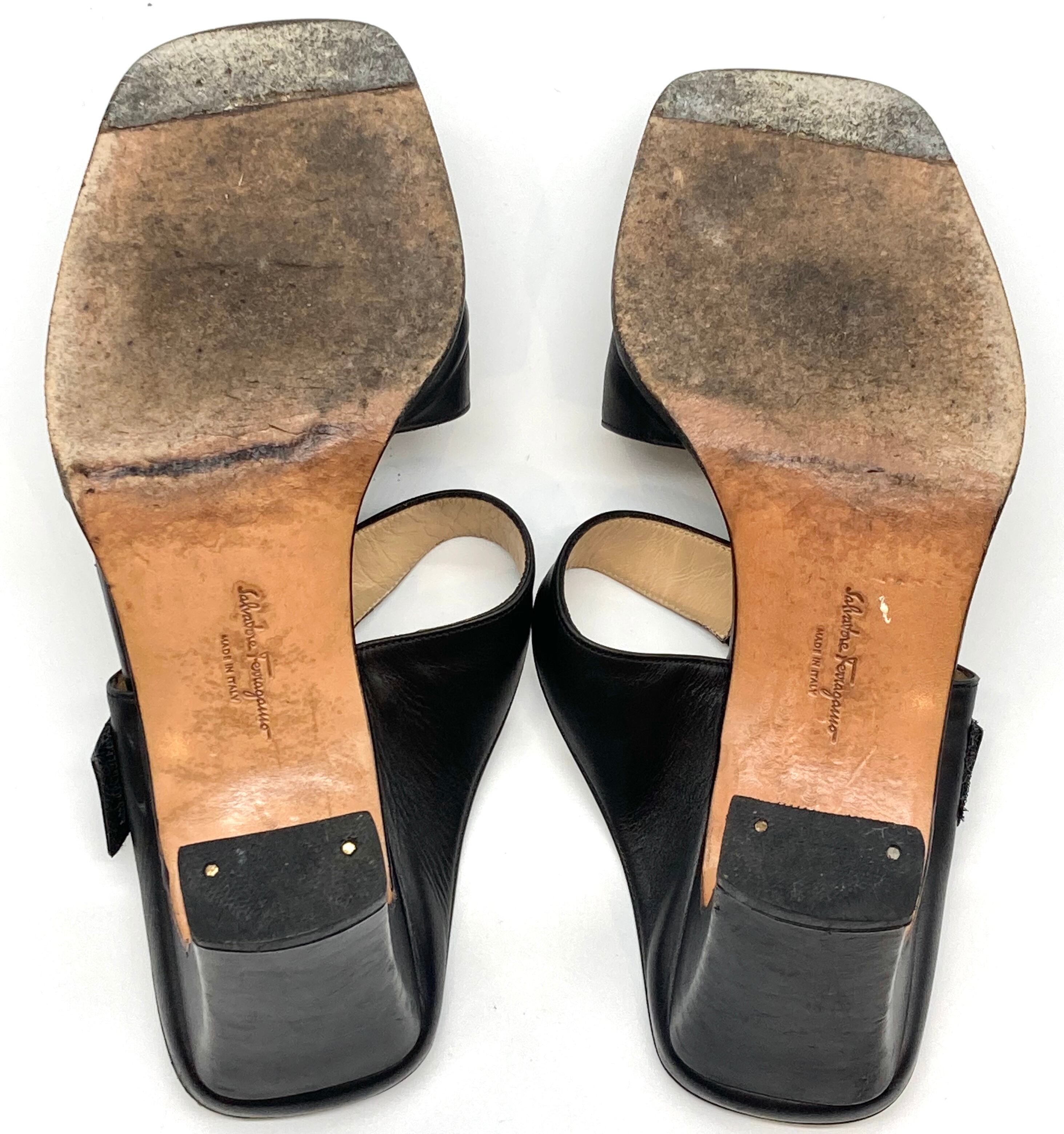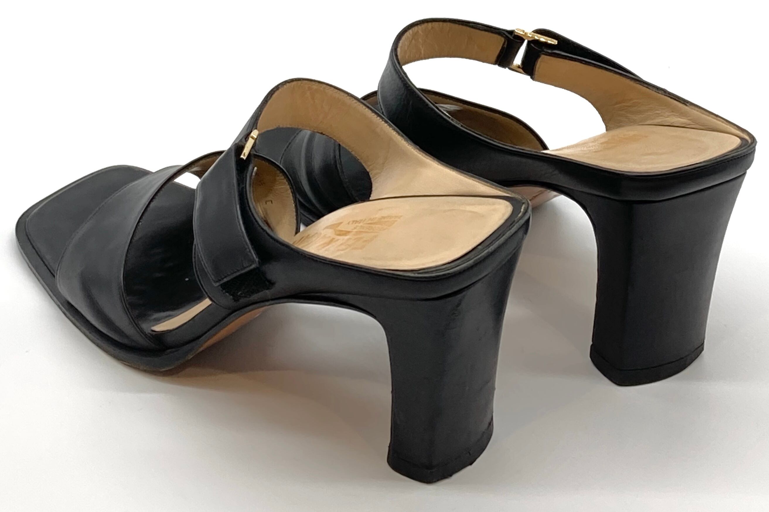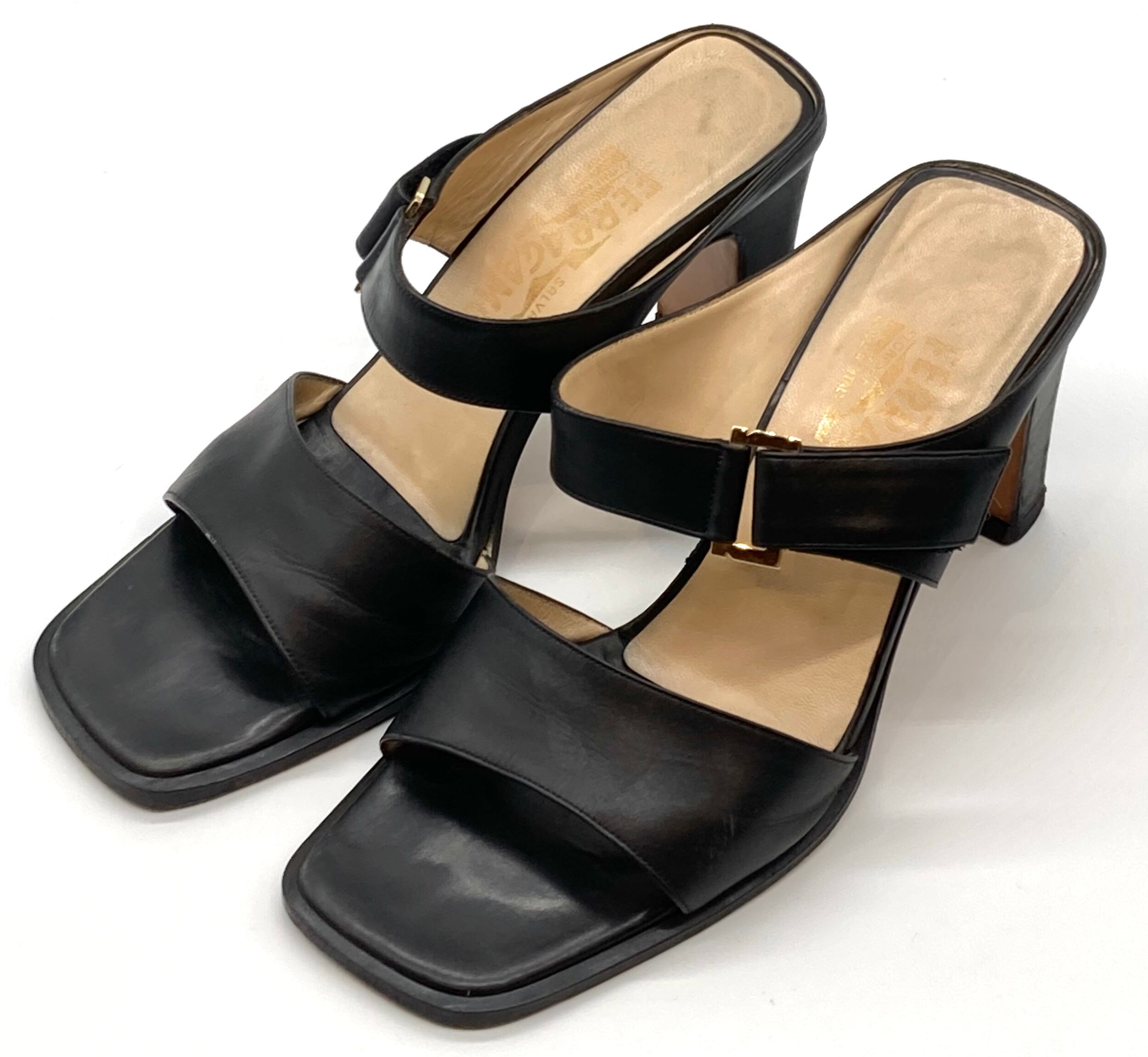 OLD FERRAGAMO(オールドフェラガモ) ブラックレザーミュールサンダル 7 1/2C