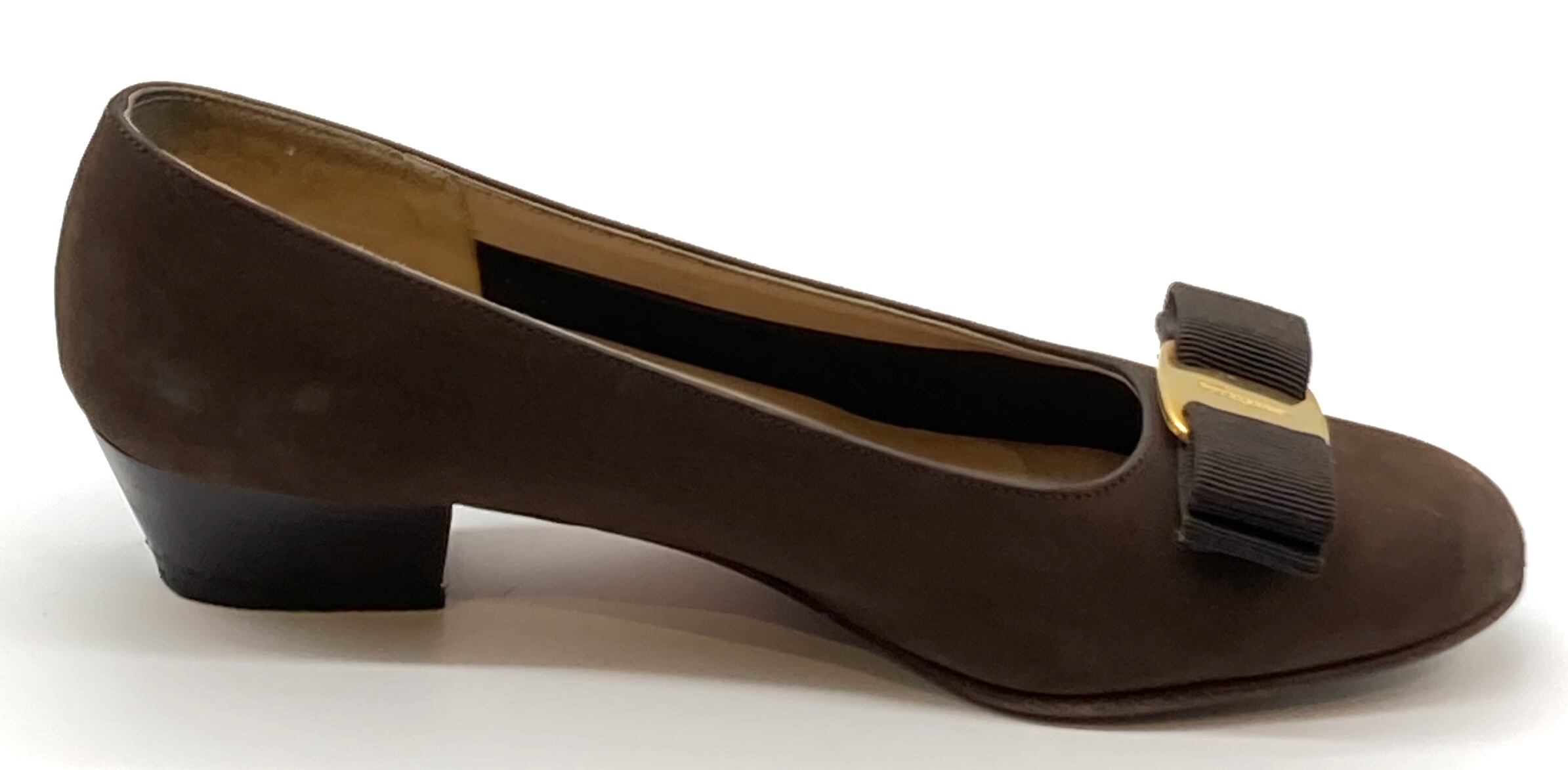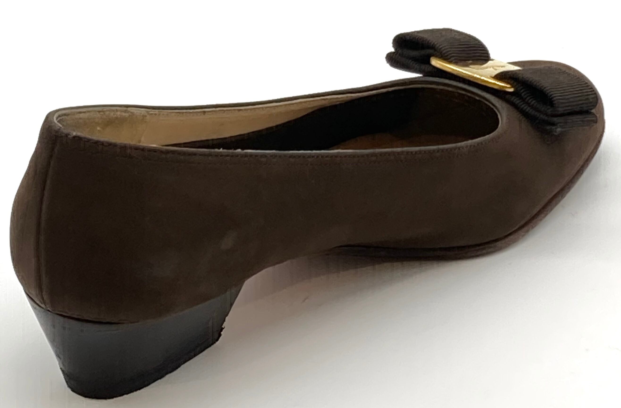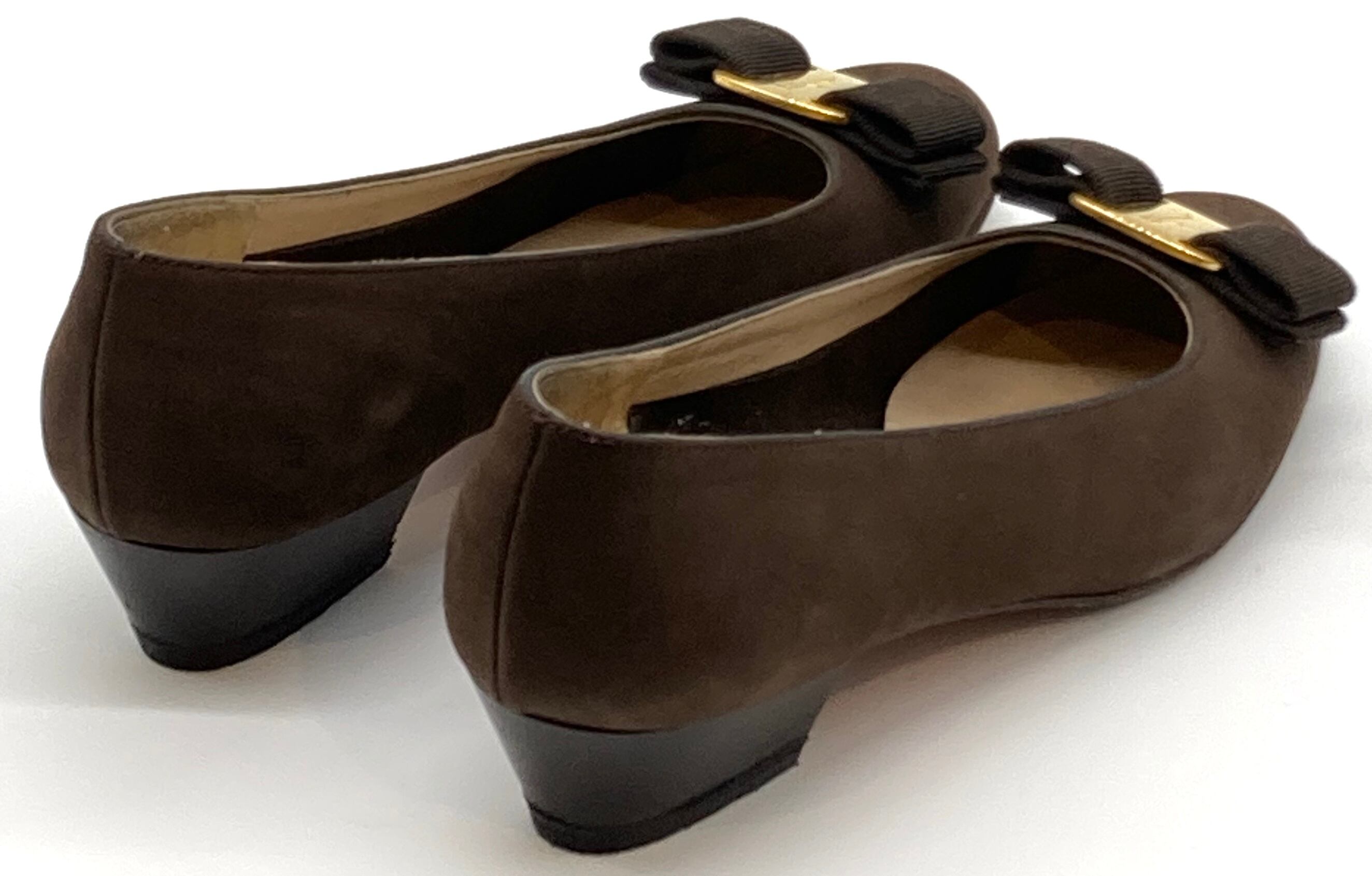 OLD FERRAGAMO(オールドフェラガモ) ダークブラウンスエードヴァラリボンパンプス 5C