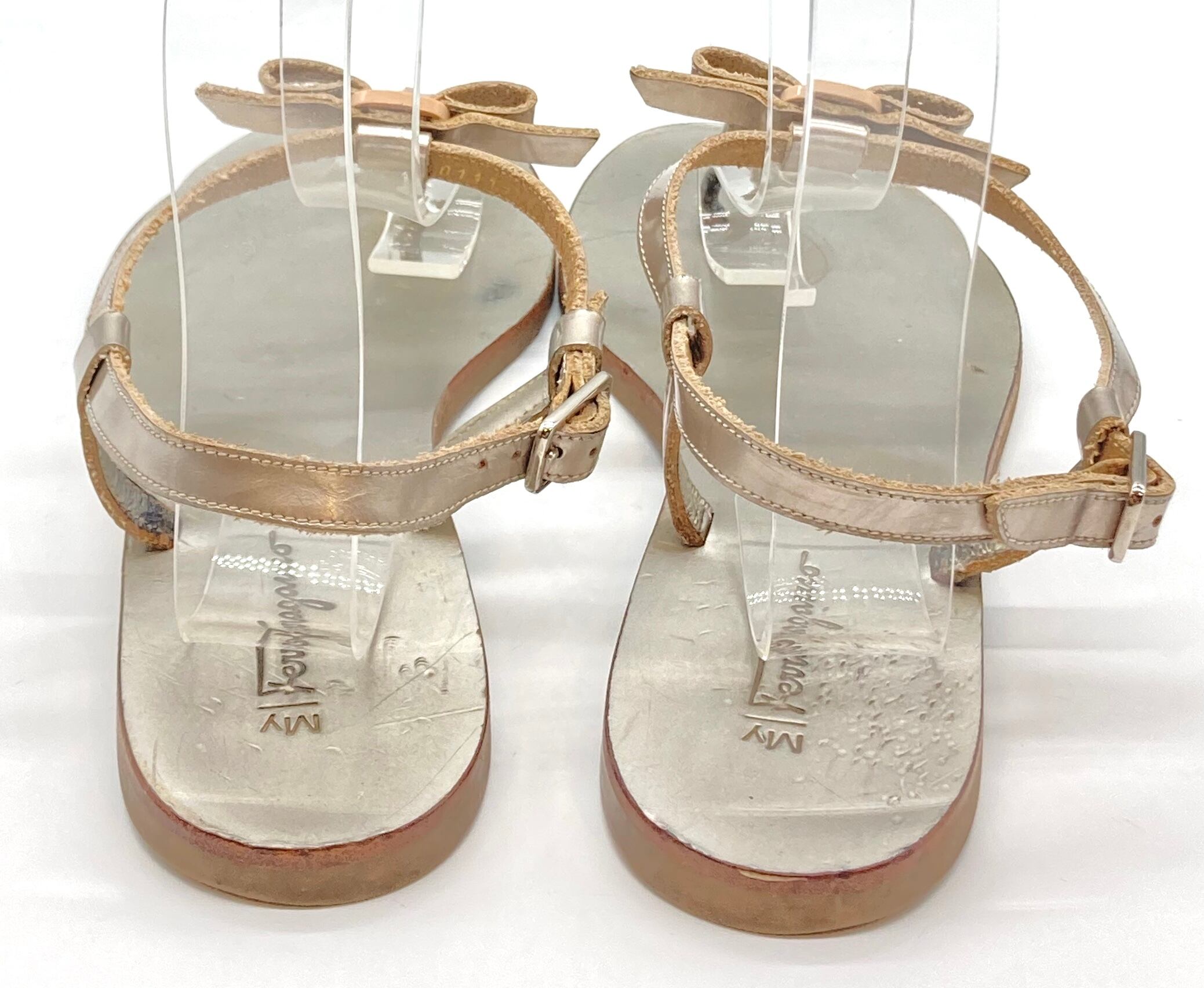 OLD FERRAGAMO(オールドフェラガモ/ヴィンテージ) シャンパンゴールドTストラップヴァラリボンフラットサンダル 8M