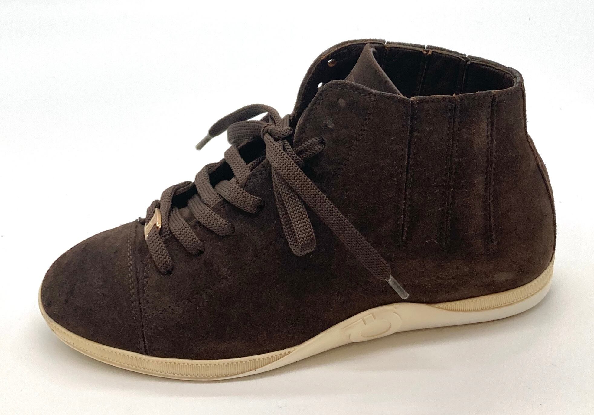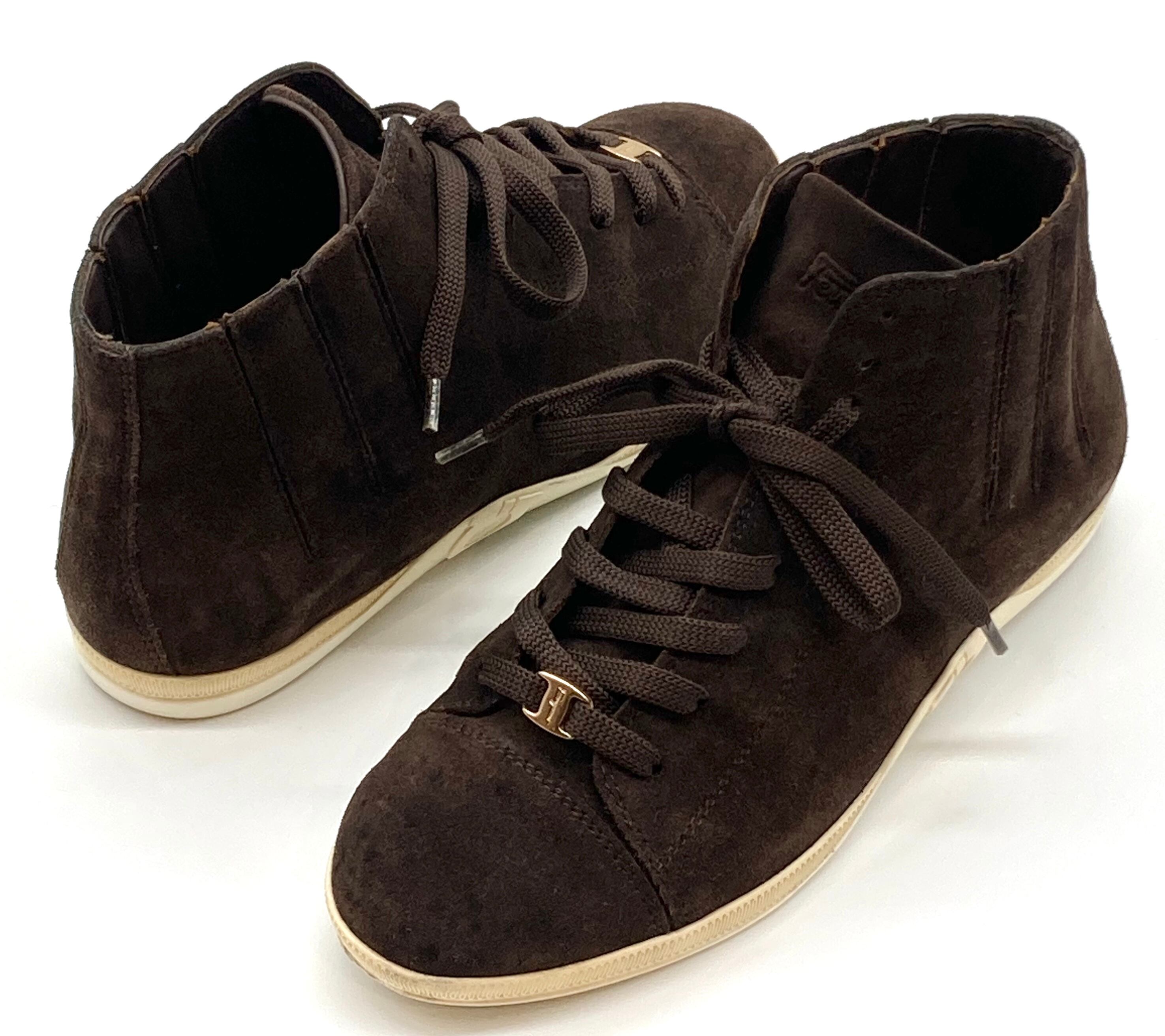 OLD FERRAGAMO(オールドフェラガモ) ブラウンスエードレースアップハイカットスニーカー 6C
