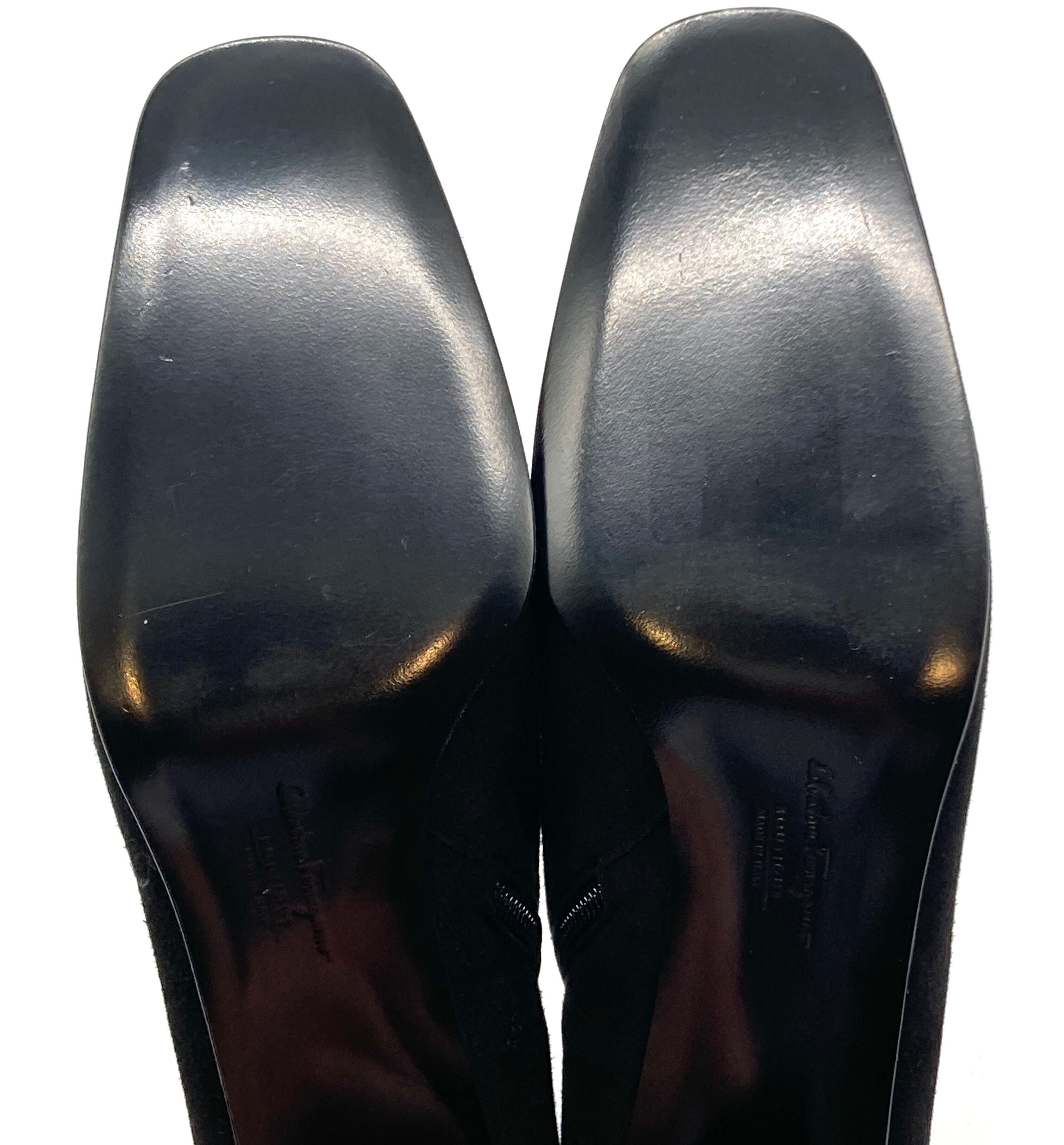 OLD FERRAGAMO(オールドフェラガモ) ブラックスエードヴァラ金具付きショートブーツ(デッドストック) 7C