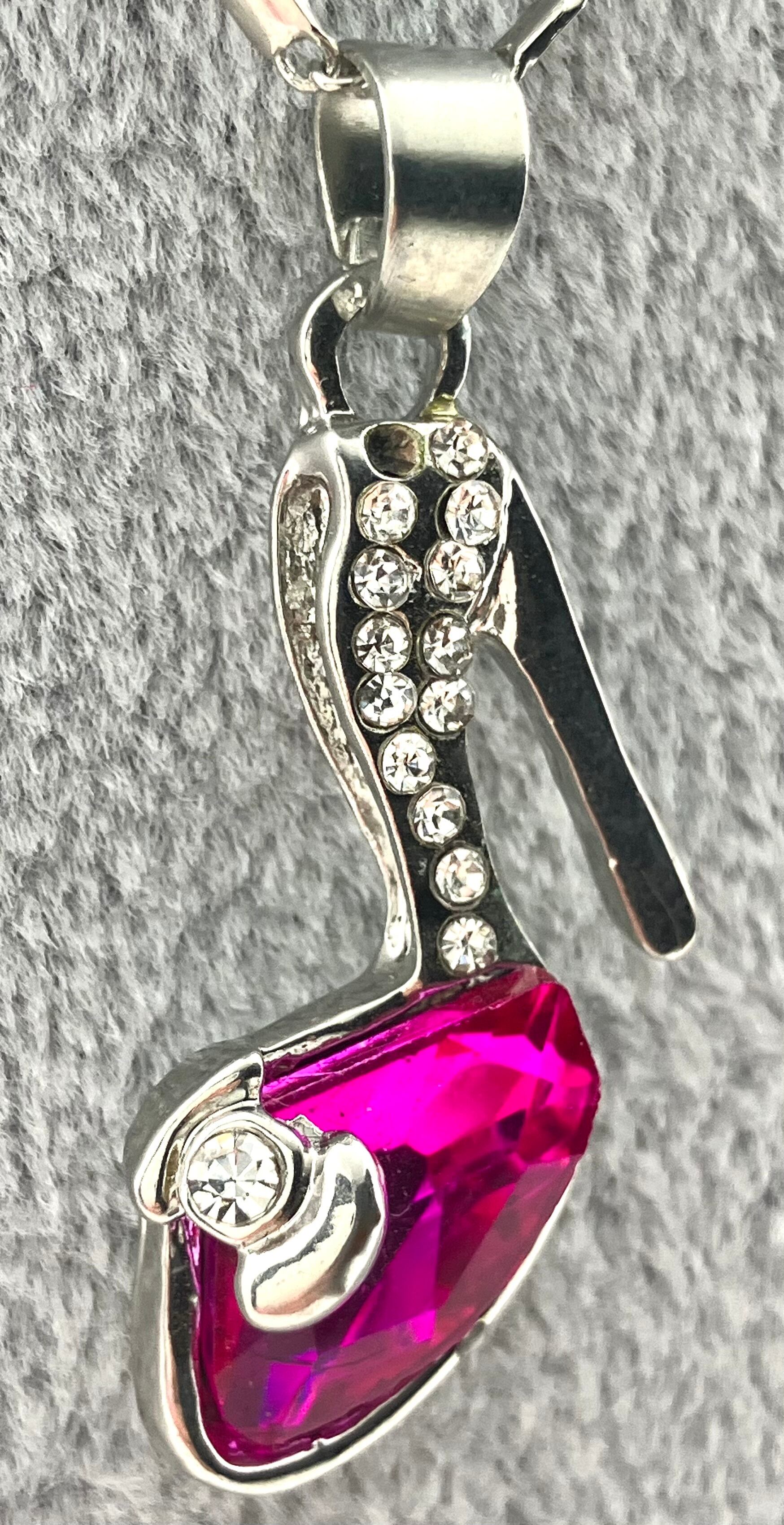 ◇ シルバーハイヒールパンプス フューシャピンクラインストーンネックレス◇