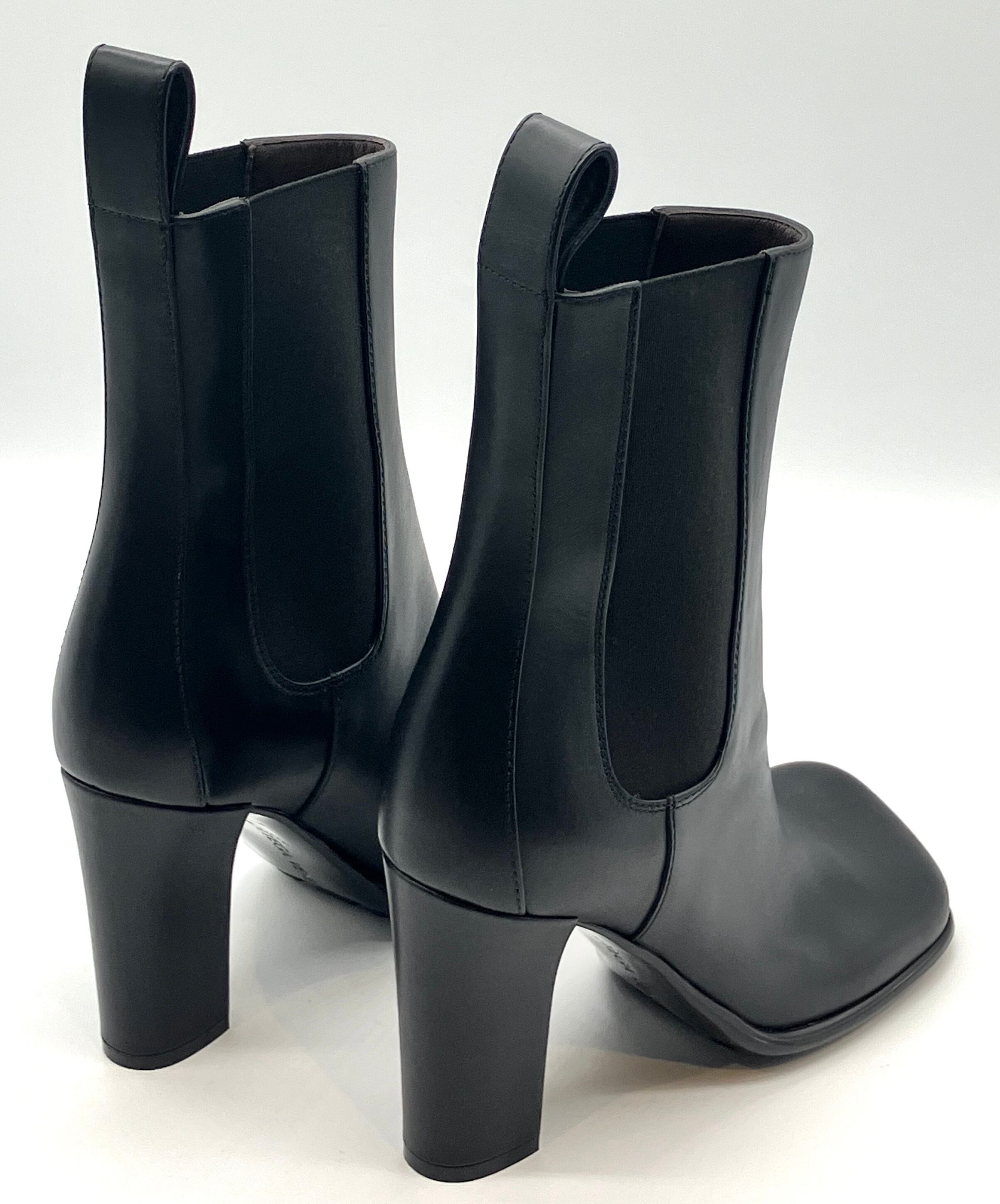 BOTTEGA VENETA (ボッテガヴェネタ)ブラックレザーボリュームスクエアトゥサイドゴアミドルブーツ35 [STORM CHELSEA BOOT]
