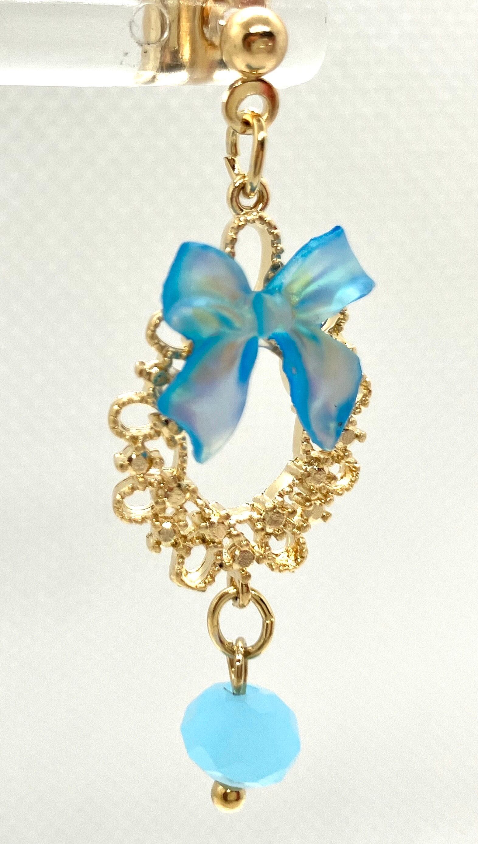 ◇ブルーフラワー付きハイヒール×リボンリースアシンメトリーモチーフピアス◇