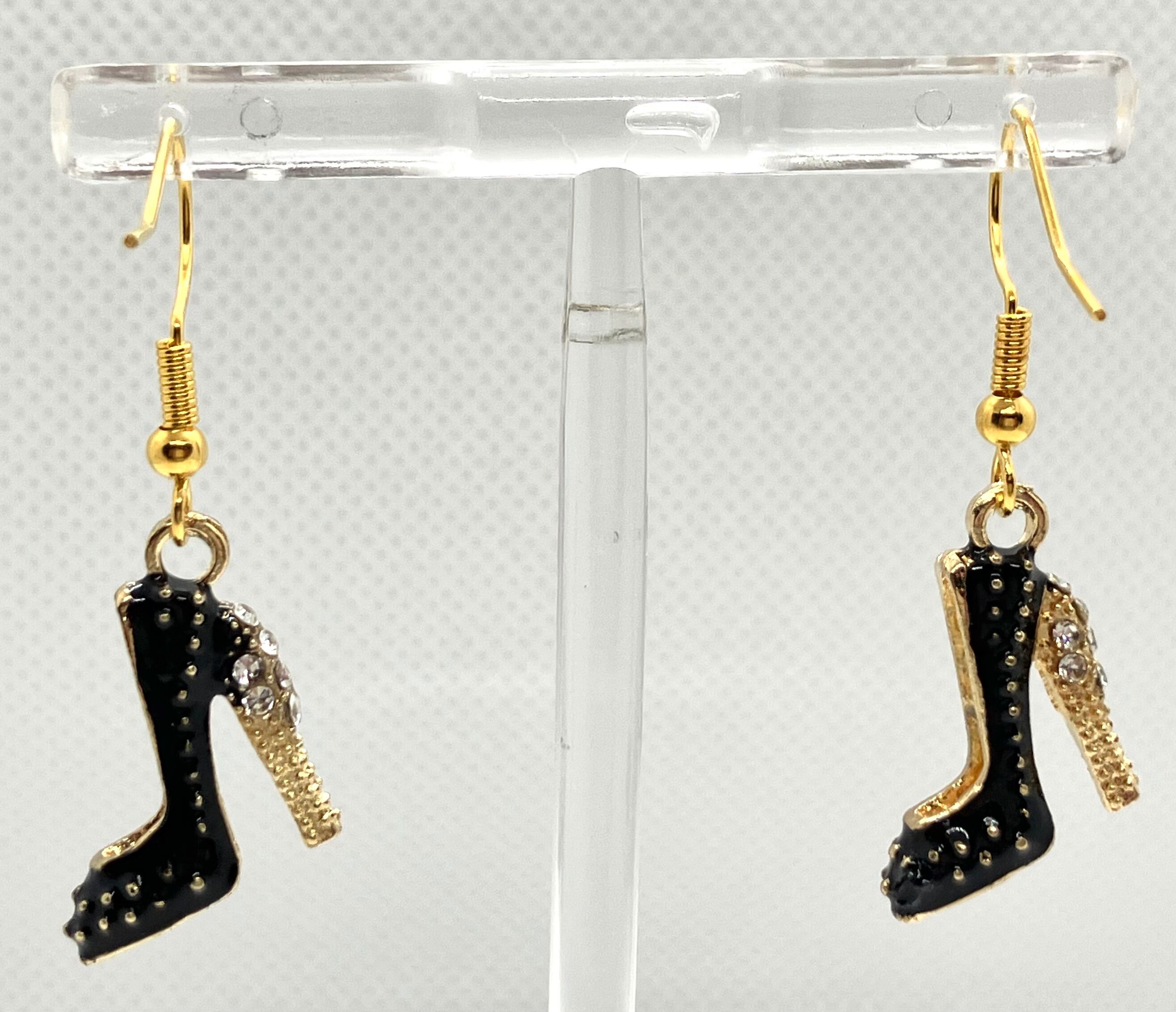 ◇ラインストーン付きブラックハイヒールモチーフゴールドフックピアス ◇