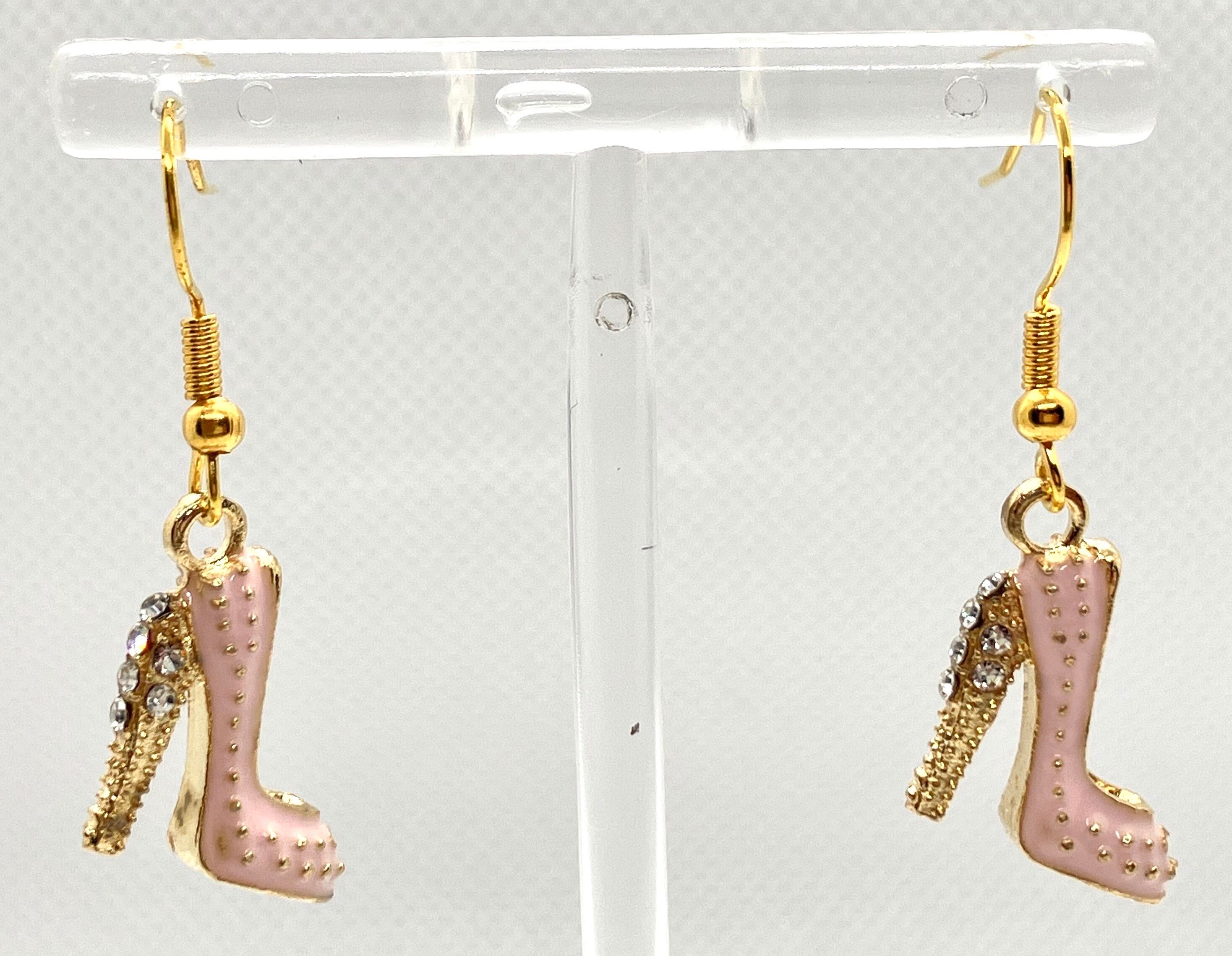◇ ラインストーン付きピンクハイヒールモチーフゴールドフックピアス ◇