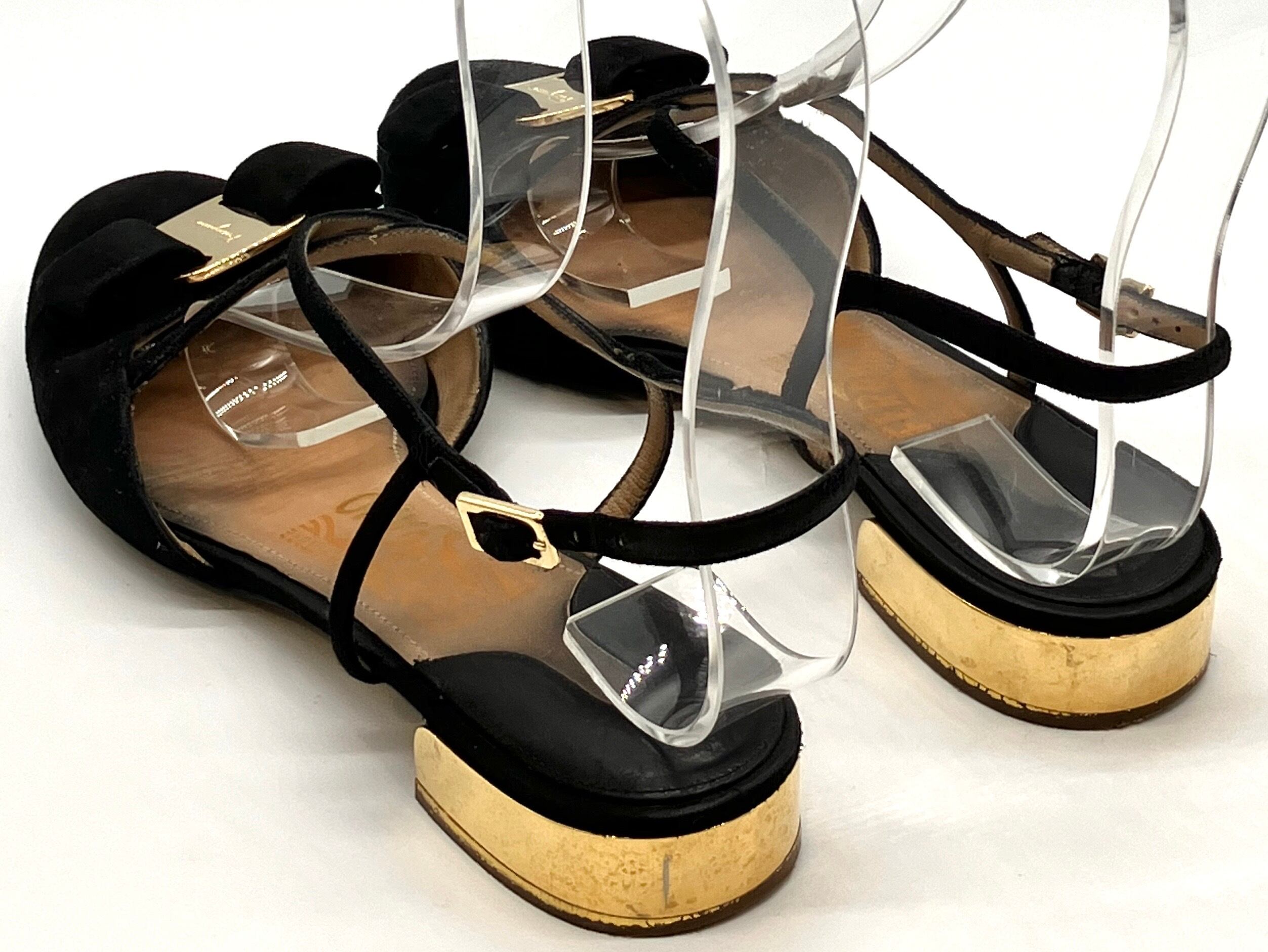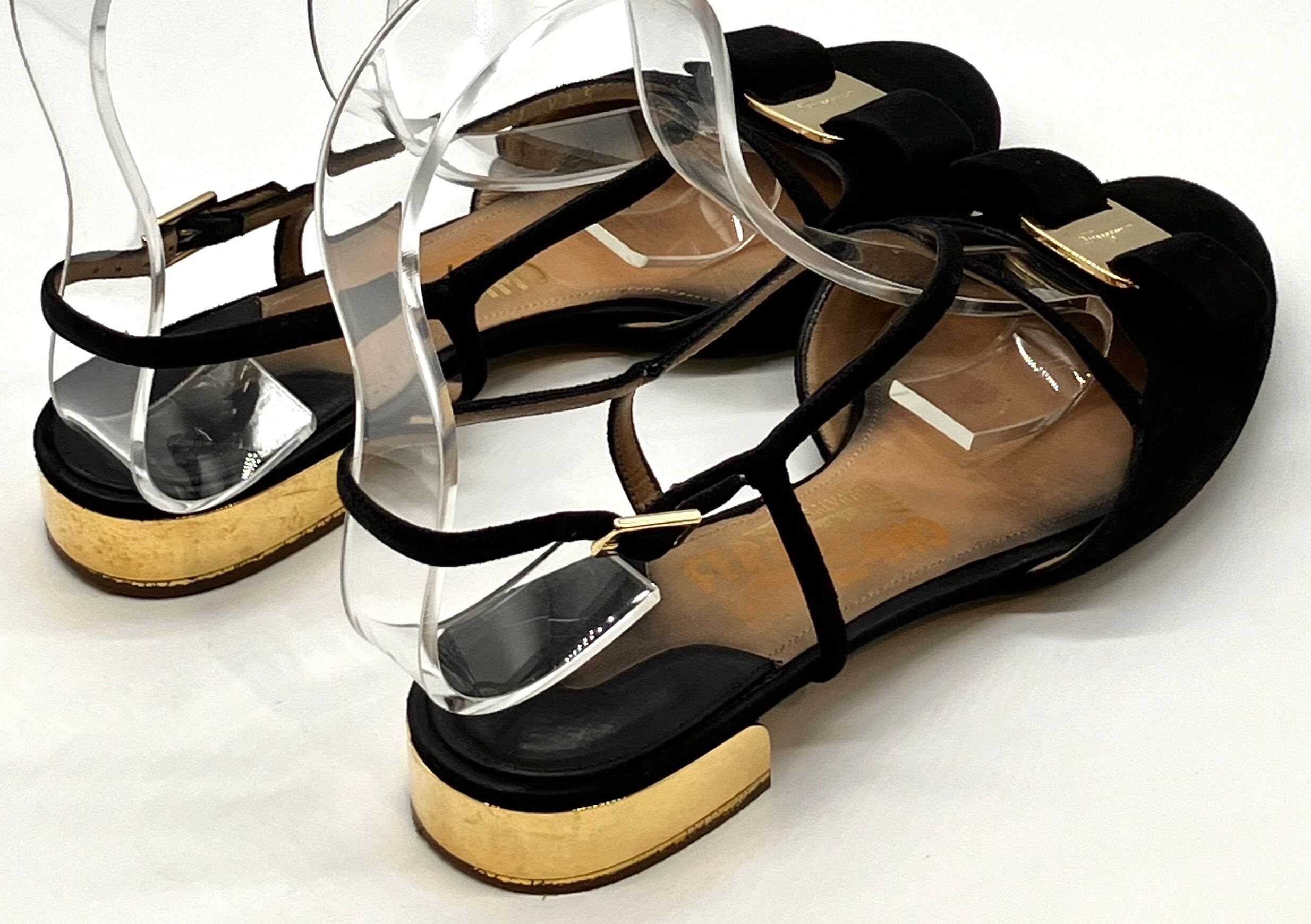 OLD FERRAGAMO(オールドフェラガモ) ブラックスエードヴァラリボンクロスストラップサンダル 5 1/2D