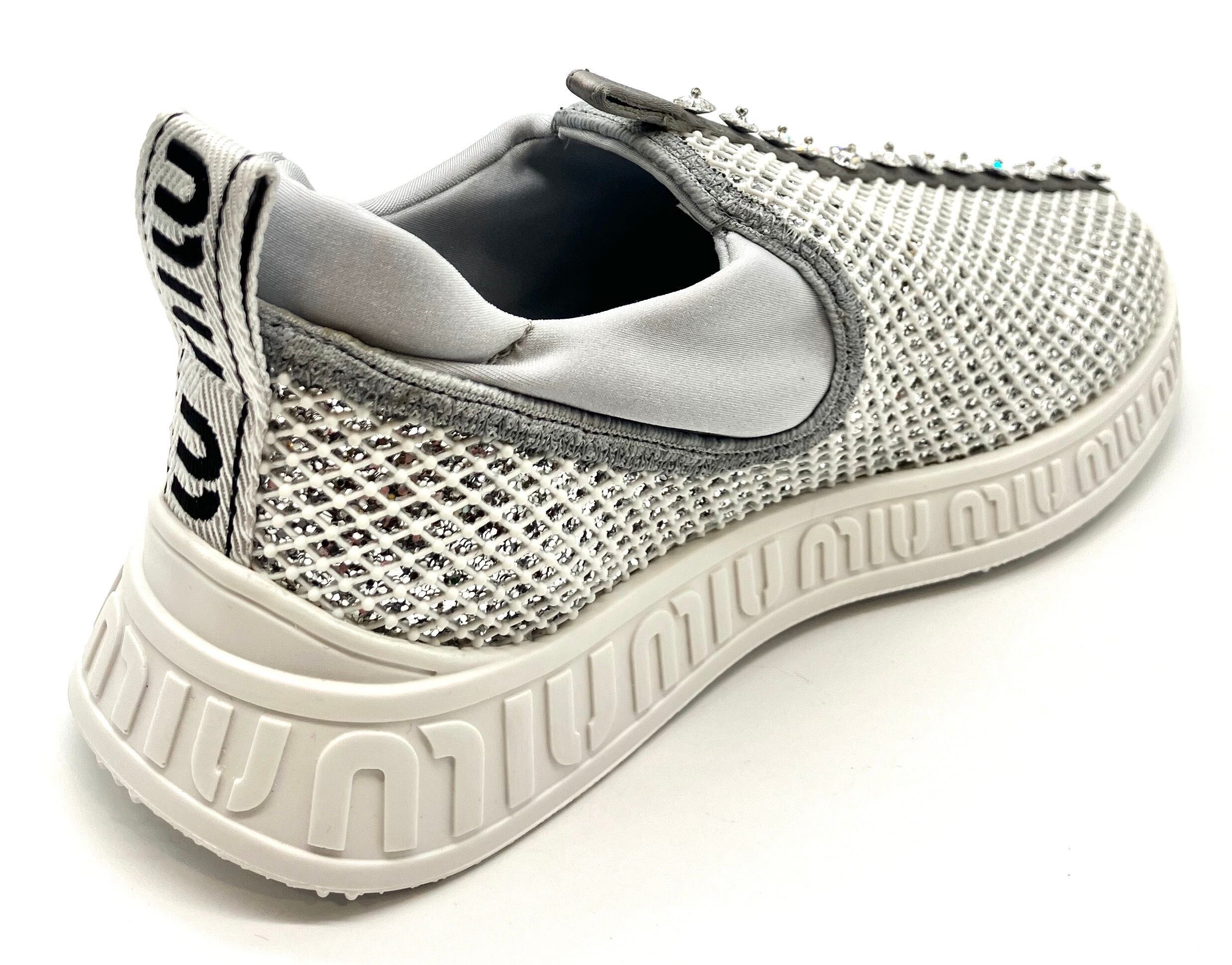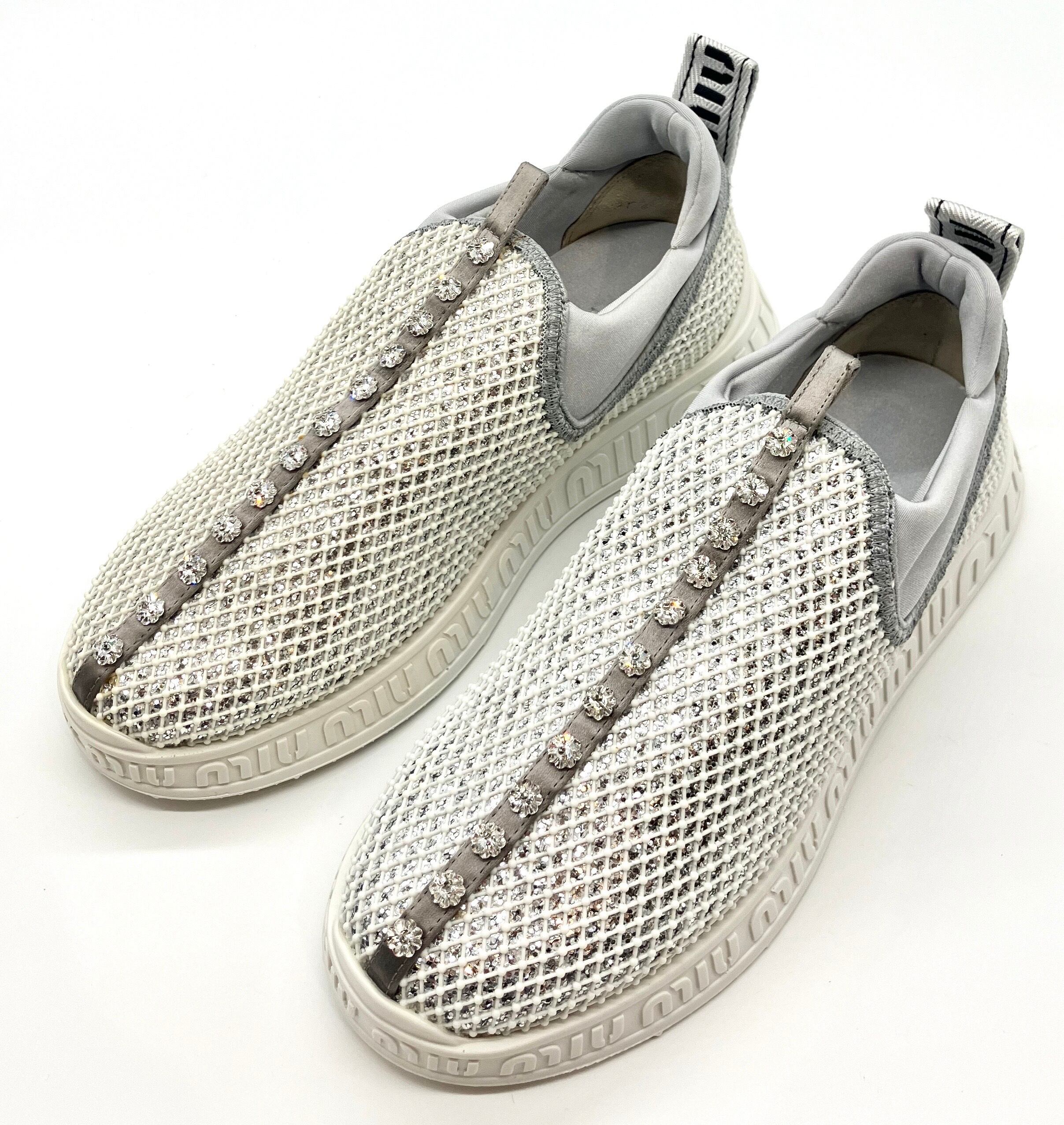 Miu Miu(ミュウミュウ)ホワイト×グレービジュー付きラメスリッポンスニーカー34 1/2