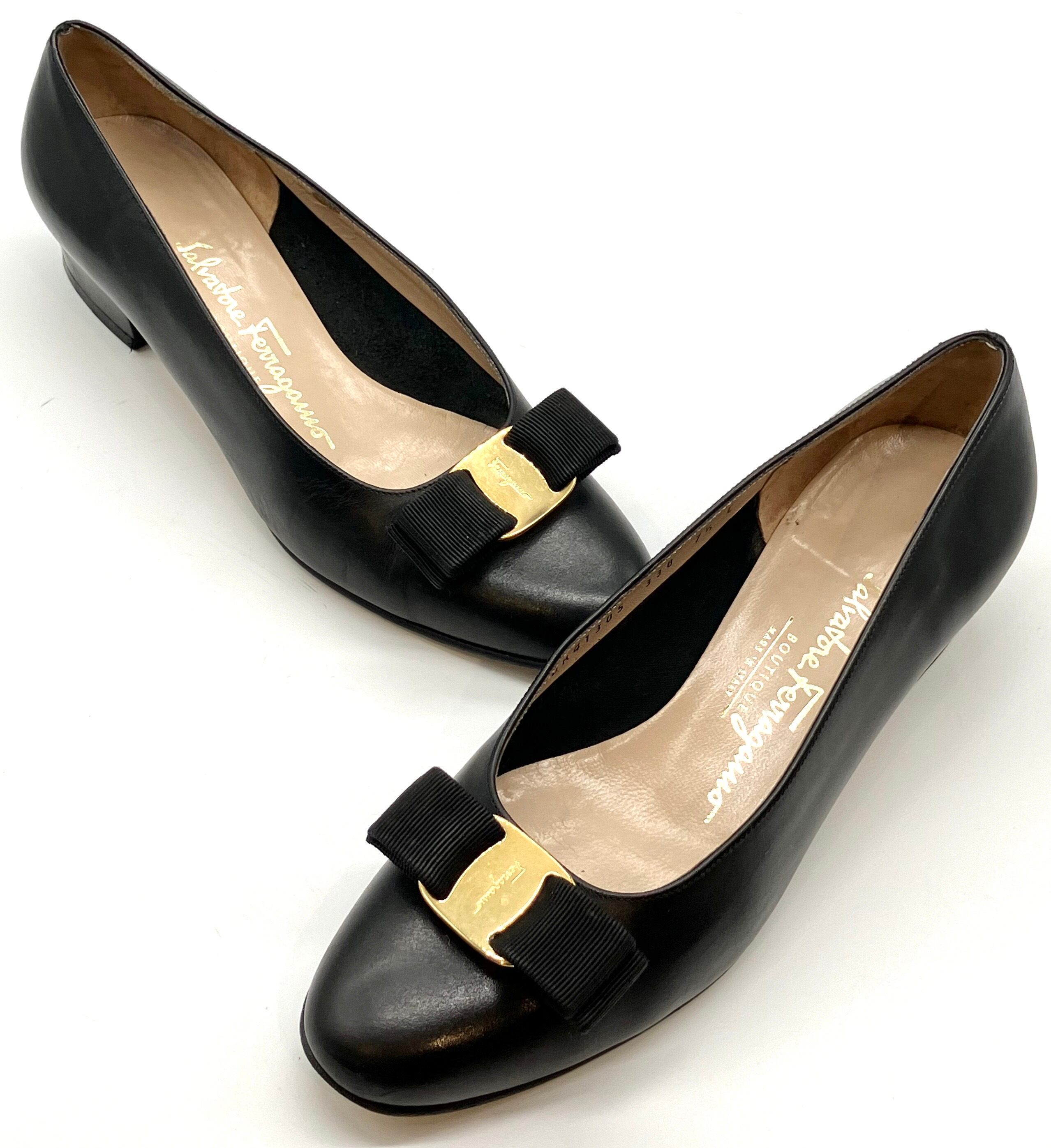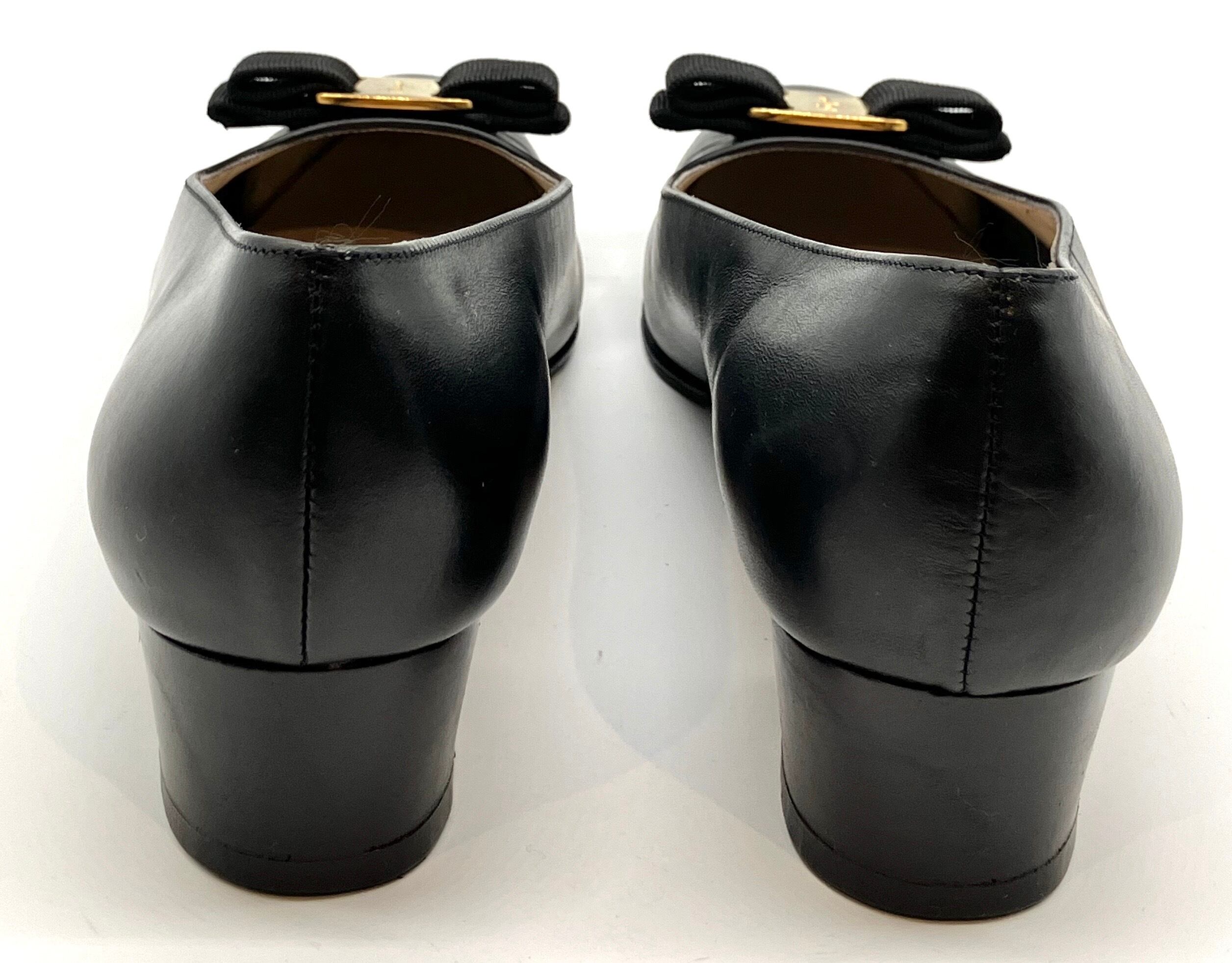 OLD FERRAGAMO(オールドフェラガモ) ブラックレザーヴァラリボンパンプス 7 1/2C